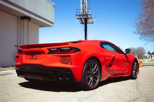 Check out the rest of the great features on this car! Memory Driver & Passenger Convenience Package, Preferred Equipment Group 2LT (2 Cargo Nets, Driver Power Bolster Seat Adjuster, Electrical Theft Deterrent System, HD Front & Rear Vision Cameras, Head-Up Display, Heated & Vented Driver & Passenger Seats, Heated Steering Wheel, Passenger Power Bolster Seat Adjuster, Performance Data & Video Recorder, Power Driver Lumbar Control Seat Adjuster, Power Passenger Lumbar Control Seat Adjuster, Power-Adjustable Outside Heated Mirrors, Rear Cross Traffic Alert, Side Blind Zone Alert, Universal Home Remote, Vehicle Inclination Theft Deterrent Sensor, Vehicle Interior Movement Theft Deterrent Sensor, and Wireless Charging for Devices), 14 Speakers, 4-Wheel Disc Brakes, 8-Way Power Driver Seat Adjuster, 8-Way Power Passenger Seat Adjuster, ABS brakes, Air Conditioning, Alloy wheels, AM/FM radio: SiriusXM, Apple CarPlay/Android Auto, Auto-dimming door mirrors, Auto-dimming Rear-View mirror, Automatic Leveling System Headlamp Control, Automatic temperature control, Black Exhaust Tips, Body-Color Exterior Accents, Bose Performance Series Sound System w/14 Speakers, Brake assist, Bright Red-Painted Calipers, Bumpers: body-color, Compass, Convertible HardTop, Convertible roof lining, Delay-off headlights, Driver door bin, Driver vanity mirror, Dual front impact airbags, Dual front side impact airbags, Electronic Stability Control, Emergency communication system: OnStar and Chevrolet connected services capable, Four wheel independent suspension, Front anti-roll bar, Front Bucket Seats, Front Center Armrest, Front dual zone A/C, Front License Plate Bracket, Front Lift Adjustable Height w/Memory, Front reading lights, Fully automatic headlights, Garage door transmitter, Glass rear window, GT1 Bucket Seats, HD Radio, Heads-Up Display, Heated door mirrors, Heated front seats, Heated steering wheel, Illuminated entry, Integrated roll-over protection, Leather Shift Knob, Leather steering wheel, Low tire pressure warning, Low-Profile Rear Spoiler & Front Splitter, Memory seat, Mulan Lthr Seating Surfaces w/Perforated Inserts, Navigation System, Occupant sensing airbag, Outside temperature display, Overhead console, Panic alarm, Passenger door bin, Passenger vanity mirror, Performance Exhaust w/Stainless-Steel Tips, Personalized Plaque w/Corvette Museum Logo, Power convertible roof, Power door mirrors, Power driver seat, Power passenger seat, Power steering, Power windows, Premium audio system: Chevrolet Infotainment 3 Premium, Radio data system, Radio: Chevrolet Infotainment 3 Premium System, Rear anti-roll bar, Rear window defroster, Remote keyless entry, Security system, SiriusXM Radio, Speed control, Speed-sensing steering, Sport steering wheel, Steering wheel memory, Steering wheel mounted audio controls, Tachometer, Telescoping steering wheel, Tilt steering wheel, Traction control, Trip computer, Turn signal indicator mirrors, Variably intermittent wipers, Ventilated front seats, Voltmeter, Wheels: 19 x 8.5 Fr/20 x 11 Rr Bright Silver, and Wheels: 19 x 8.5 Fr/20 x 11 Rr Midnight Gray.