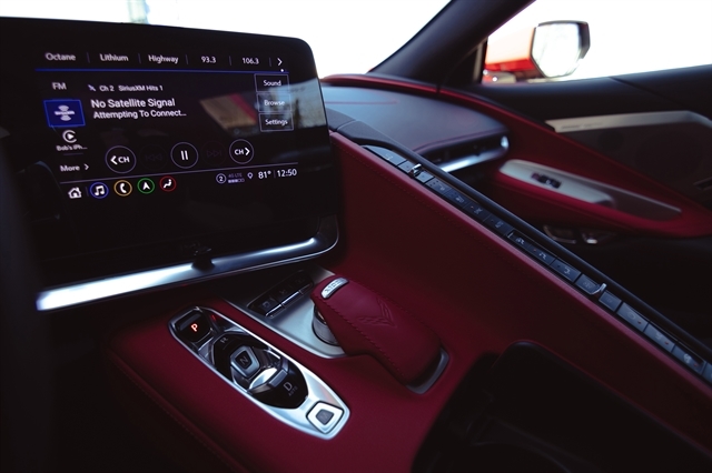 | AUDIO SYSTEM CHEVROLET INFOTAINMENT 3 PREMIUM SYSTEM WITH CONNECTED NAVIGATION 8 diagonal HD color touchscreen AM/FM stereo Bluetooth audio streaming for 2 active devices Apple CarPlay and Android Auto capable enhanced voice recognition additional memory for in-vehicle apps cloud connected personalization for select infotainment and vehicle settings. (STD) | CORVETTE MUSEUM DELIVERY includes (CFX) Corvette Museum logo plaque personalized with your name and VIN |