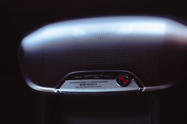 | ADRENALINE RED MULAN LEATHER SEATING SURFACES WITH PERFORATED INSERTS | PLAQUE PERSONALIZED WITH CORVETTE MUSEUM LOGO YOUR NAME AND VIN |