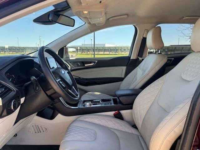 Powered by the efficient and responsive EcoBoost 2.0L I4 GTDi DOHC Turbocharged VCT engine, paired with an 8-Speed Automatic transmission and All-Wheel Drive, the 2024 Edge Titanium delivers a thrilling yet fuel-efficient performance. With an EPA-estimated 21 MPG in the city and 28 MPG on the highway, you can enjoy the perfect balance of power and efficiency.