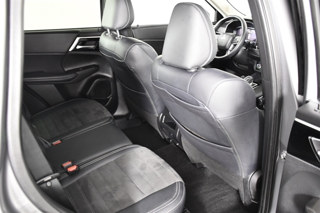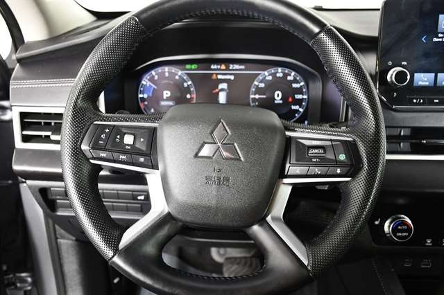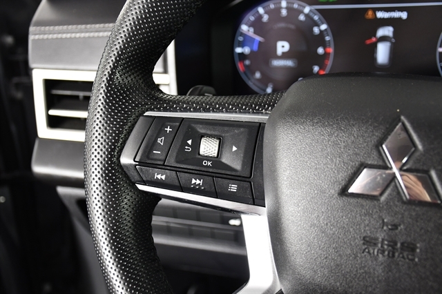 Check out the rest of the great features on this car! Mitsubishi Certified Pre-Owned VE Certified, 4WD, 3rd row seats: split-bench, 4-Wheel Disc Brakes, 5.694 Axle Ratio, 6 Speakers, ABS brakes, Air Conditioning, Alloy wheels, AM/FM radio: SiriusXM, Android Auto & Apple CarPlay, Auto High-beam Headlights, Automatic temperature control, Brake assist, Bumpers: body-color, Driver door bin, Driver vanity mirror, Dual front impact airbags, Dual front side impact airbags, Electronic Stability Control, Emergency communication system: Mitsubishi Connect w/ 24-month trial, Exterior Parking Camera Rear, Four wheel independent suspension, Front anti-roll bar, Front Bucket Seats, Front Center Armrest w/Storage, Front dual zone A/C, Front fog lights, Front reading lights, Fully automatic headlights, Headlight cleaning, Heated door mirrors, Heated Front Bucket Seats, Heated front seats, Illuminated entry, Knee airbag, Leather Shift Knob, Leather steering wheel, Low tire pressure warning, Navigation System, Occupant sensing airbag, Outside temperature display, Overhead airbag, Overhead console, Panic alarm, Passenger door bin, Passenger vanity mirror, Power door mirrors, Power driver seat, Power Liftgate, Power steering, Power windows, Radio data system, Radio: AM/FM 9.0 Navigation w/Smartphone Link, Rain sensing wipers, Rear anti-roll bar, Rear seat center armrest, Rear side impact airbag, Rear window defroster, Rear window wiper, Reclining 3rd row seat, Remote keyless entry, Security system, Speed control, Speed-Sensitive Wipers, Split folding rear seat, Spoiler, Steering wheel mounted audio controls, Synthetic Leather Seat Trim, Tachometer, Telescoping steering wheel, Tilt steering wheel, Traction control, Trip computer, Turn signal indicator mirrors, and Variably intermittent wipers.