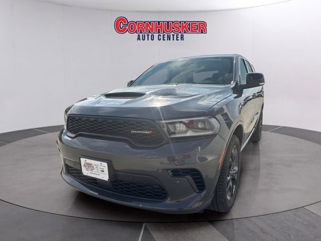 The 2026 Dodge Durango GT Blacktop AWD features a powerful 3.6L V6 engine with an 8-speed automatic transmission, paired with advanced safety features like Blind-Spot Monitoring with Trailer Detection, Adaptive Cruise Control with Stop, and Full-Speed Forward-Collision Warning Plus. It comes in Vapor Gray exterior with black leather-trimmed bucket seats, a 10.1-inch Uconnect 5 navigation touchscreen, heated front seats and steering wheel, and premium Alpine audio. The Blacktop Package adds 20-inch black aluminum wheels, gloss-black badging, and a performance hood for a bold look. Additional highlights include ParkView rear backup camera, ParkSense front and rear park assist, power sunroof, wireless charging pad, and more.Stop by today for a must-own New Chrysler, Jeep, Dodge, and Ram at Cornhusker Auto Center, 700 E Norfolk Ave, Norfolk, NE 68701 --- your local new car dealership in Nebraska. Just minutes away!