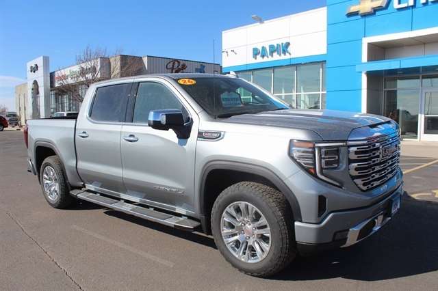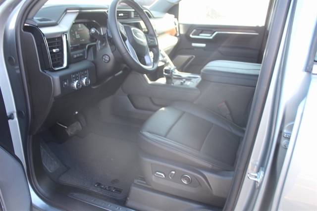 Technology Package (Multicolor 15`` Diagonal Head-Up Display and Rear Camera Mirror), Trailering Package (Hitch Guidance), 10-Speed Automatic, 4WD, Jet Black Leather, 12-Way Power Driver Seat Adjuster w/Lumbar, 12-Way Power Passenger Seat Adjuster w/Lumbar, 120-Volt Bed Mounted Power Outlet, 120-Volt Interior Power Outlet, 170 Amp Alternator, 2 Charge/Data USB Ports Inside Center Console, 2 Type-C Charge-Only Rear USB Ports, 2 USB Ports, 3.23 Rear Axle Ratio, 4-Wheel Disc Brakes, 7 Speakers, ABS brakes, Adaptive suspension, Air Conditioning, Alloy wheels, AM/FM radio: SiriusXM with 360L, Apple CarPlay/Android Auto, Auto High-beam Headlights, Auto-dimming door mirrors, Auto-dimming Rear-View mirror, Auto-Locking Rear Differential, Automatic temperature control, Auxiliary External Transmission Oil Cooler, Bed View Camera, Brake assist, Buckle to Drive, Bumpers: body-color, Chrome Header w/Signature Denali Chrome Grille, Chrome Recovery Hooks, Chrome Wheel To Wheel Assist Steps, Color-Keyed Carpeting Floor Covering, Compass, Deep-Tinted Glass, Delay-off headlights, Denali Premium Suspension w/Adaptive Ride Control, Driver door bin, Driver Memory, Driver vanity mirror, Dual Active Exhaust, Dual front impact airbags, Dual front side impact airbags, Electric Rear-Window Defogger, Electronic Stability Control, Emergency communication system: OnStar, Enhanced Automatic Emergency Braking, Floor-Mounted Center Console, Following Distance Indicator, Forge Perforated Leather Seat Trim, Forward Collision Alert, Front anti-roll bar, Front Bucket Seats, Front Center Armrest, Front dual zone A/C, Front fog lights, Front Pedestrian Braking, Front Rain-Sensing Wipers, Front reading lights, Front wheel independent suspension, Fully automatic headlights, Garage door transmitter, Genuine wood console insert, Genuine wood dashboard insert, Genuine wood door panel insert, HD Surround Vision, Heated 2nd Row Outboard Seats, Heated door mirrors, Heated Driver & Front Outboard Passenger Seating, Heated front seats, Heated rear seats, Heated steering wheel, Heavy-Duty Air Filter, Hill Descent Control, Hitch View, Illuminated entry, In-Vehicle Trailering System App, Integrated Trailer Brake Controller, IntelliBeam Automatic High Beam On/Off, Keyless Open & Start, Lane Keep Assist w/Lane Departure Warning, LED Cargo Area Lighting, Low tire pressure warning, Memory seat, Navigation System, Occupant sensing airbag, OnStar Services Capable, Outside temperature display, Overhead airbag, Overhead console, Panic alarm, Passenger door bin, Passenger vanity mirror, Perimeter Lighting, Power Door Locks, Power door mirrors, Power driver seat, Power Front Passenger Windows w/Express Up/Down, Power Front Windows w/Driver Express Up/Down, Power passenger seat, Power Rake & Telescoping Steering Column, Power Rear Windows w/Express Down, Power Sliding Rear Window w/Rear Defogger, Power steering, Power windows, Premium Bose 7-Speaker Sound System, Push Button Start, Radio data system, Radio: Premium GMC Infotainment Audio System, Rain sensing wipers, Rear Cross Traffic Braking, Rear Pedestrian Detection, Rear reading lights, Rear seat center armrest, Rear step bumper, Rear Wheelhouse Liners, Rear window defroster, Remote keyless entry, Remote Vehicle Starter System, Safety Alert Seat, Security system, SiriusXM w/360L Trial Subscription, Speed control, Speed-sensing steering, Split folding rear seat, Spray-On Pickup Bedliner w/GMC Logo, Steering Wheel Audio Controls, Steering wheel mounted audio controls, Super Cruise, Tachometer, Telescoping steering wheel, Theft Deterrent System (Unauthorized Entry), Tilt steering wheel, Traction control, Trailer Camera Provisions, Trailer Side Blind Zone Alert, Trip computer, Ultrasonic Front & Rear Park Ass