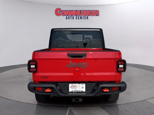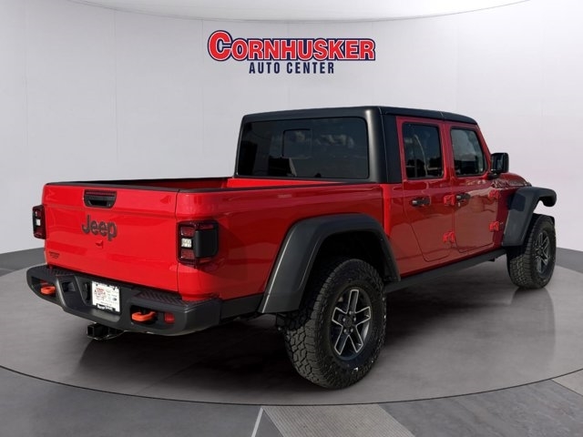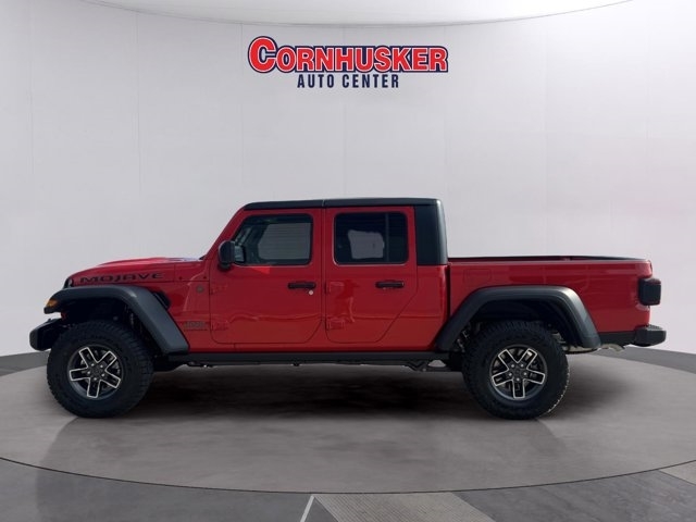 The *2025 Jeep Gladiator Mojave 4*4* in *Flame Red Clear-Coat* delivers striking looks alongside serious off-road capability. Under the hood sits the 3.6L V6 24V VVT engine with Stop/Start, teamed with an 8-speed automatic transmission. The Mojave package adds rugged hardware --- FOX internal bypass shocks, heavy-duty Dana 44 axles, a Tru-Lok rear locker, skid plates, and 33-inch all-terrain tires --- for top-tier trail performance. Inside, enjoy modern tech including a 12.3-inch Uconnect® touchscreen, heated front seats and steering wheel, plus creature comforts like Apple CarPlay/Android Auto, and premium sound. Safety features include adaptive cruise control with stop, forward-collision warning plus, a rear back-up camera, and other driver assists. With its bold red exterior and loaded package, this Gladiator Mojave is built to stand out and go wherever you want. Visit Cornhusker Auto Center at *700 E Norfolk Ave, Norfolk, NE 68701* to see it in person.