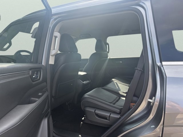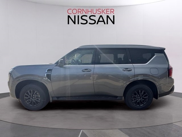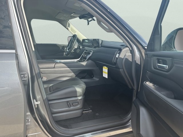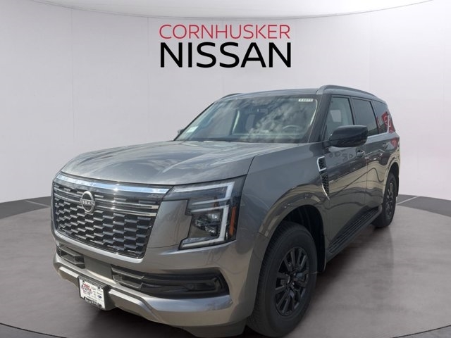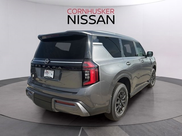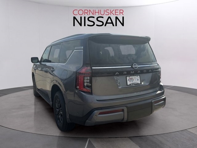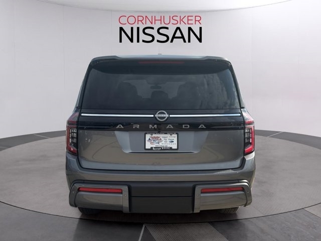 The 2025 Nissan Armada in Gun Metallic with a Charcoal interior is a full-size SUV that combines rugged capability with refined luxury. Powered by a 3.5L twin-turbo V6 engine producing 425 horsepower and 516 lb-ft of torque, it is paired with a 9-speed automatic transmission and comes standard with four-wheel drive. The EPA-estimated fuel economy is 15 MPG city and 18 MPG highway, offering a balance between power and efficiency.Inside, the Armada offers a spacious and luxurious cabin with features such as leather-appointed seating, a 12.3-inch digital display, and a 13-speaker Bose audio system. The exterior design includes LED headlights, a bold front grille, and 20-inch wheels. Safety features include Nissan's Safety Shield 360 and ProPILOT Assist.Visit Cornhusker Nissan at 2125 Krenzien Dr., Norfolk, NE 68701 to see the 2025 Nissan Armada in person and take it for a test drive. Our team is ready to assist you in finding the perfect vehicle to suit your needs.