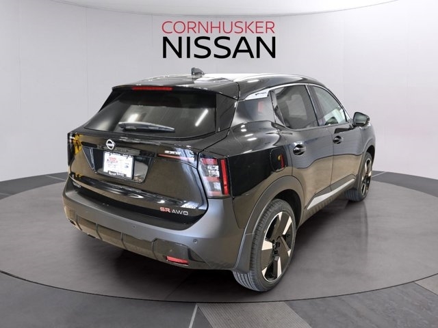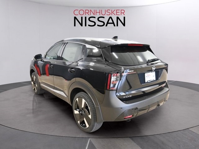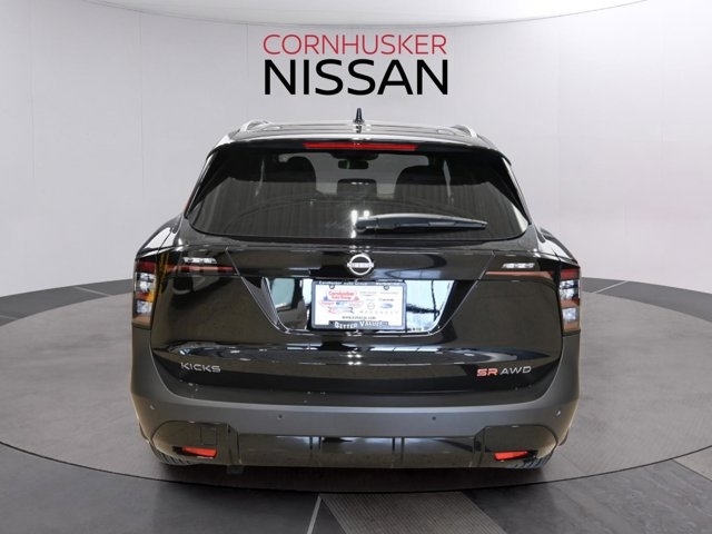 The *2025 Nissan Kicks SR AWD* in sleek *Super Black* features a sporty interior and an efficient 2.0L I-4 engine paired with a smooth CVT transmission. This compact sport utility offers an EPA-estimated *27 MPG city* and *34 MPG highway*, perfect for both city drives and weekend getaways. Equipped with all-wheel drive for confident handling, the Kicks SR includes sport leatherette seating, a 12.3-inch digital display, premium audio, and advanced safety features like Blind Spot Monitoring, Rear Cross Traffic Alert, Lane Departure Warning, and an Intelligent Around View® Monitor to make parking easier. Visit Cornhusker Nissan at 2125 Krenzien Dr., Norfolk, NE 68701 to see the 2025 Nissan Kicks SR AWD today.