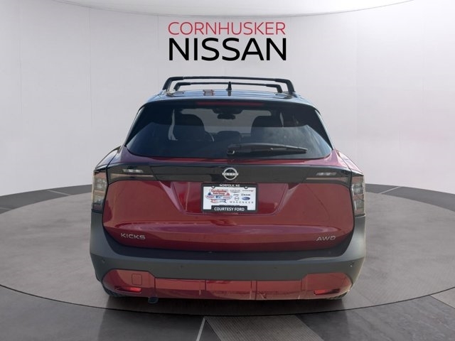 Elevate your daily drives with the 2026 Nissan Kicks AWD, featuring a striking XDU/2T Red Black exterior paired with a Charcoal interior. Powered by a 2.0L 4-cylinder engine delivering 141 horsepower and 140 lb-ft of torque, this compact SUV offers a dynamic driving experience. With an EPA-estimated 34 MPG on the highway and 27 MPG in the city, the Kicks ensures efficiency without compromising on performance. Inside, the cabin boasts a 12.3-inch touchscreen with wireless Apple CarPlay and Android Auto, providing seamless connectivity. Safety is paramount with features like Nissan Safety Shield® 360, including Automatic Emergency Braking and Blind Spot Warning. Whether navigating city streets or venturing off the beaten path, the 2026 Nissan Kicks AWD is designed to meet your needs.Visit Cornhusker Nissan at 2125 Krenzien Dr, Norfolk, NE 68701, to experience the 2026 Nissan Kicks AWD in person.