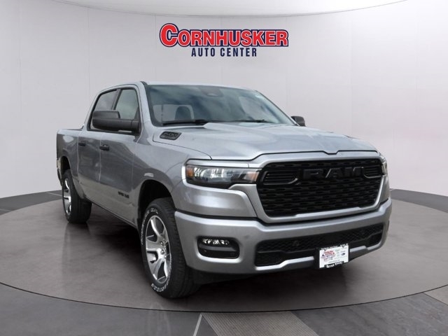 The 2025 Ram 1500 Tradesman Crew Cab 4X4 is built tough to handle your work and weekend adventures. Powered by a 3.0L I6 Hurricane SO Twin Turbo engine with Stop/Start technology, it balances power and fuel efficiency, delivering an EPA-estimated 17 MPG city and 24 MPG highway. This model features an 8-speed automatic transmission, 20-inch polished aluminum wheels, and a Class IV receiver hitch ready for towing. Inside, you'll enjoy a comfortable black cloth bench seat, Uconnect® 5 with an 8.4-inch touchscreen, hands-free phone and audio capabilities, plus a 4G LTE Wi-Fi® hotspot to keep you connected. Safety is front and center with Adaptive Cruise Control with Stop and Go, Full-Speed Forward-Collision Warning Plus, Blind-Spot and Cross-Path Detection, ParkSense® Front and Rear Park-Assist, and Pedestrian Emergency Braking. Finished in Billet Silver Metallic Clear-Coat, this Ram 1500 includes the Tradesman Level 1 Equipment Group, Sport Appearance Package, and Trailer Brake Controller for added versatility. With an MSRP of $55,245 including destination charge and strong warranty coverage, the 2025 Ram 1500 Tradesman Crew Cab 4X4 is ready to work as hard as you do. Visit Cornhusker Auto Center at 700 E Norfolk Ave, Norfolk, NE 68701 today to check it out!