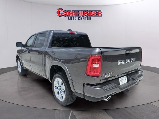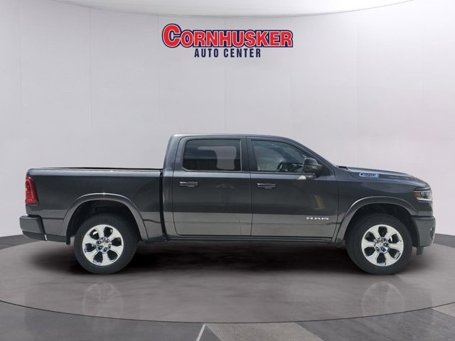 The 2025 Ram 1500 Big Horn Crew Cab 4x4 delivers rugged capability with premium comfort. It's powered by a 3.0L I-6 Hurricane SO Twin Turbo engine with Stop/Start paired with an 8-speed automatic transmission, showing an estimated 17 MPG city and 24 MPG highway. The Diamond Black Crystal Pearlcoat exterior, 20-inch chrome-clad aluminum wheels, heated front seats, power-folding mirrors, and 115V inverter add both style and utility. Inside, enjoy a tech-rich cabin with Uconnect® 5 NAV, 12-inch touchscreen, heated steering wheel, power-adjustable driver seat, remote tailgate release, and a rear 60/40 folding bench. Safety is top of the line with Blind-Spot & Cross-Path Detection, Adaptive Cruise Control with Stop and Go, ParkView® Rear Back-Up Camera, and heated mirrors with memory. Including destination charges, this Big Horn hits the sweet spot between power, comfort, and value. Visit Cornhusker Auto Center at *700 E Norfolk Ave, Norfolk, NE 68701* to see it in person!