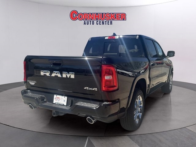 The 2025 Ram 1500 Big Horn Crew Cab 4x4 delivers toughness, comfort, and modern tech wrapped in one impressive package. Equipped with a 3.0L I6 Hurricane SO Twin Turbo engine with Stop/Start and paired with the 8-speed automatic 8HP75 transmission, this truck pushes capability while offering an EPA-estimated *17 MPG city / 24 MPG highway*. Outfitted with heavy-duty shocks front and rear, full safety systems like Blind-Spot and Cross-Path Detection, Adaptive Cruise Control with Stop and Go, and ParkView® Rear Back-Up Camera, it's built for real-world driving. Inside, enjoy deluxe cloth bucket seats, a 12.0-inch Uconnect® 5 Nav touchscreen display, dual-zone automatic climate control, power-adjustable driver seat, heated front seats, and useful extras like a 400W inverter, wireless charging pad, and power tailgate-release. Finished in Diamond Black Crystal Pearl Exterior Paint with 20-inch chrome-clad wheels and a 33-gallon fuel tank, it balances style and utility. With a total MSRP of about *$63,195*, including destination charge, this Big Horn offers premium features without overpromising. Visit Cornhusker Auto Center at *700 E Norfolk Ave, Norfolk, NE 68701* to take a look and see how it fits your needs.