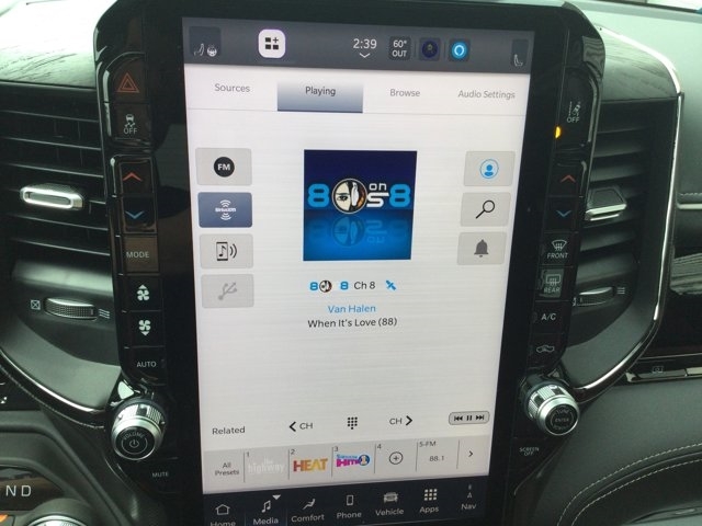| RED/BLACK/EBONY PREMIUM QUILTED LEATHER BUCKET SEATS | LIMITED LEVEL A EQUIPMENT GROUP -inc: Surround View Camera System LED CHMSL Lamp Tri-Fold Tonneau Cover Traffic Sign Recognition RamBox Cargo Management System Hands-Free Active Driving Assist System Head Up Display Evasive Steer Assist Drowsy Driver Detection Exterior 115V AC Outlet Intersection Collision Assist System Smartphone As A Key Capable 14.4" Touchscreen Display Radio: Uconnect 5 Nav w/14.4" Display 240 Amp Alternator 12-Way/1-Way Trailer Connector |