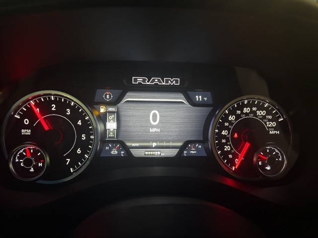 This vehicle's Forward Collision Warning system alerts the driver to potential front-end collisions, enhancing safety. This unit is pure luxury with a heated steering wheel. Never get into a cold vehicle again with the remote start feature on the vehicle. The vehicle features a hands-free Bluetooth phone system. It offers Apple CarPlay for seamless connectivity. Protect this Ram 1500 from unwanted accidents with a cutting edge backup camera system. The vehicle offers Automatic Climate Control for personalized comfort. The state of the art park assist system will guide you easily into any spot. The installed navigation system will keep you on the right path. with XM/Sirus Satellite Radio you are no longer restricted by poor quality local radio stations while driving the Ram 1500. Anywhere on the planet, you will have hundreds of digital stations to choose from. This Ram 1500 has automated speed control that adjusts to maintain a safe following distance, enhancing highway driving convenience.