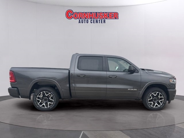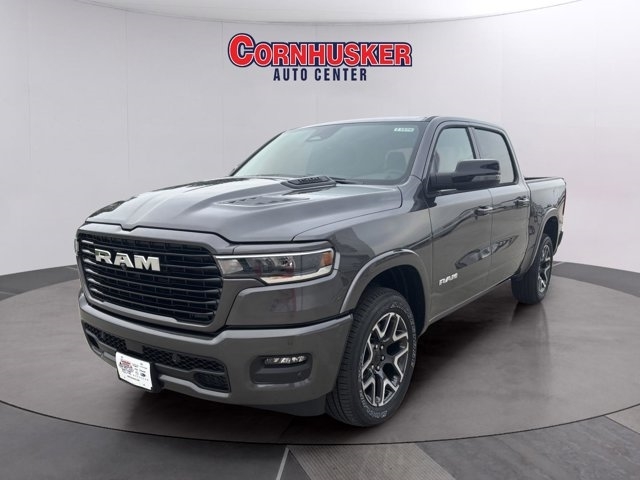 The 2026 RAM 1500 Laramie Crew Cab 4x4 offers a perfect blend of power, technology, and comfort. It is powered by a 3.0L I6 Hurricane Twin-Turbo engine paired with an 8-speed automatic transmission, ensuring strong performance and efficiency. Safety features include Adaptive Cruise Control with Stop and Go, Blind-Spot and Cross-Path Detection, Full-Speed Forward-Collision Warning Plus, ParkSense® Front and Rear Park-Assist, and a ParkView® Rear Back-Up Camera. Inside, the cabin boasts leather-trimmed bucket seats, a 12-inch Uconnect® 5 touchscreen with navigation, Apple CarPlay® and Android Auto? integration, SiriusXM® 360L with a 3-month subscription, and a premium 9-speaker audio system with a subwoofer. Exterior highlights include 20-inch premium painted/polished wheels, LED reflector headlamps with automatic high-beam control, LED fog lamps, chrome power mirrors with auto-fold, and body-color fender flares. Additional conveniences such as power-adjustable driver's seat with memory, heated and ventilated front seats, heated second-row seats, dual-zone automatic climate control, and a power tailgate add to the overall luxury and utility of this pickup. For a must-own new Chrysler, Jeep, Dodge, or Ram, visit Cornhusker Auto Center, 700 E Norfolk Ave, Norfolk, NE 68701---your local new car dealership just minutes away!