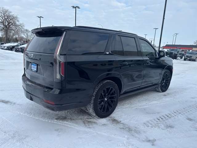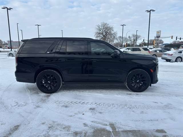 | Preferred Equipment Group 1SH: Trailer Side Blind Zone Alert; Power Panoramic Tilt-Sliding Sunroof; Enhanced Automatic Parking Assist; In-Vehicle Trailering System App; Floor Console with Covered Storage; Rear Camera Mirror Washer; Rear Camera Mirror; Theft-Deterrent Alarm System; Rear Seat Entertainment System; Vehicle Interior Movement Sensor; Platinum Interior Trim; Rear Cross Traffic Alert; Vehicle Inclination Sensor; Glass Breakage Sensor; Body-Color Door Handles; Lane Keep Assist with Lane Departure Warning; Door Lock and Latch Shields; Electronic Limited-Slip Differential; AKG Studio Reference 36-Speaker Audio System; Integrated Trailer Brake Controller; Hitch Guidance with Hitch View; Single-Speed Active Transfer Case; Running Board Assist Steps; Driver Assist Tech Package; Air Ionizer; Reconfigurable Full-Color Head-Up Display; Magnetic Ride Control Suspension | Onyx Package: Gloss Black Escalade Nameplate; Monochrome Cadillac Emblems; 22" 12-Spoke Gloss Black Alloy Wheels |