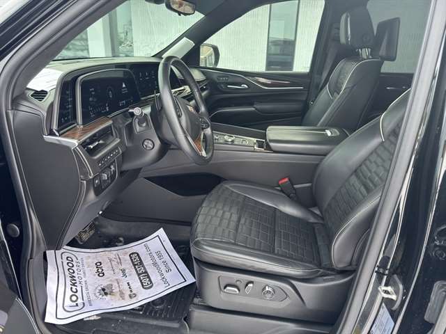 Preferred Equipment Group 1SH: Trailer Side Blind Zone Alert; Power Panoramic Tilt-Sliding Sunroof; Enhanced Automatic Parking Assist; In-Vehicle Trailering System App; Floor Console with Covered Storage; Rear Camera Mirror Washer; Rear Camera Mirror; Theft-Deterrent Alarm System; Rear Seat Entertainment System; Vehicle Interior Movement Sensor; Platinum Interior Trim; Rear Cross Traffic Alert; Vehicle Inclination Sensor; Glass Breakage Sensor; Body-Color Door Handles; Lane Keep Assist with Lane Departure Warning; Door Lock and Latch Shields; Electronic Limited-Slip Differential; AKG Studio Reference 36-Speaker Audio System; Integrated Trailer Brake Controller; Hitch Guidance with Hitch View; Single-Speed Active Transfer Case; Running Board Assist Steps; Driver Assist Tech Package; Air Ionizer; Reconfigurable Full-Color Head-Up Display; Magnetic Ride Control Suspension. Onyx Package: Gloss Black Escalade Nameplate; Monochrome Cadillac Emblems; 22" 12-Spoke Gloss Black Alloy Wheels. Interior Protection Package: All-Weather Integrated Cargo Liner; 1st 2nd and 3rd Row All-Weather Floor Mats. Night Vision. 22" 12-Spoke Gloss Black Alloy Wheels. Power-Retractable Assist Steps. Cooled Console with Covered Storage. Illuminated Cargo Sill Plate. Monochrome Cadillac Emblems. 1st 2nd and 3rd Row All-Weather Floor Mats. Gloss Black Escalade Nameplate. All-Weather Integrated Cargo Liner. Puddle Lamps with Cadillac Crest. **Equipment listed is based on original vehicle build and subject to change. Please confirm the accuracy of the included equipment by calling the dealer prior to purchase.**