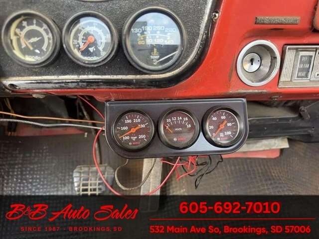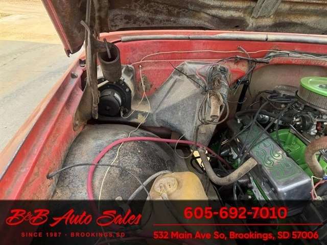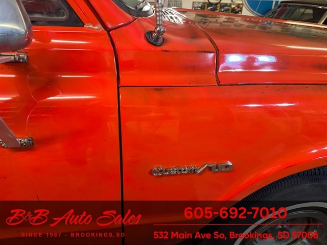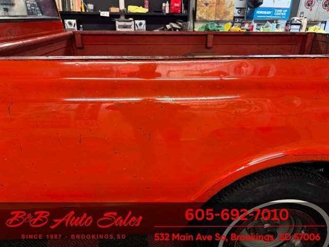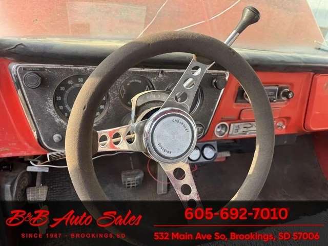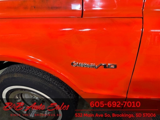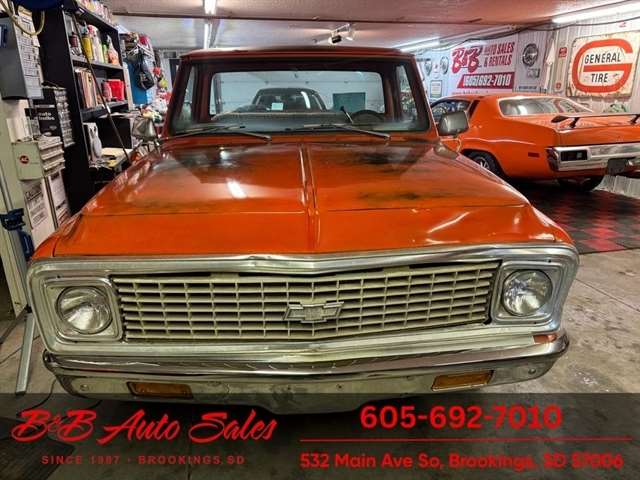 *350 V8*Automatic*Long Box *Power steering & brakesMECHANICAL- This C-10 has gone thru our inspection.*Rebuilt engine*Horn does not work.EXTERIOR- The body is in good shape. It has original patina but a pretty solid truck. It does have some rust on rockers and cab corners . The box needs new wood and tailgate is dented. Windshield is broke. See the video for an up close inspection. Text Dirk at 605-695-7391 for running and driving video`sINTERIOR- The interior is complete and original. DIRK`S COMMENTS- With 38 years of experience I will give you my opinion of the C-10. It is a good driving truck that a local guy started restoring with redoing the drivetrain so a good running and driving truck. History- A truck from here in South Dakota. TEST DRIVE- We personally test drive our vehicles so we know what they drive like. I have drove this one 10 miles and it drives good.Located in White,SDBUY WITH CONFIDENCE as this 1972 Chevrolet C-10 has gone thru inspection and test drive. We personally work and drive these ourselves so can answer any questions you may have. We show you any issues with over 100 pictures and videos of a walk around, running and driving.VALUE- We price our vehicles to market value and try to be one of the best prices of vehicles in comparable condition. Our goal is to give you a good buy on a vehicle you are going to have fun with and enjoy. We do have a document fee but only $50 which is lower than most other dealers.VIDEOS- Call, text or email for videos of driving the vehicle and of the engine running and accessories working. Text Dirk at 605-695-7391.Call or text Dirk at 605-695-7391 or Darren 605-695-9555 with any questions. B and B Auto Sales, 324 W Main White SD 57276