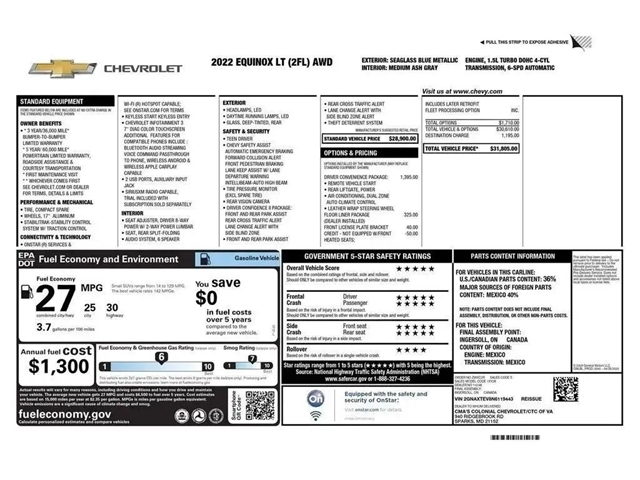 BUY WITH CONFIDENCE with warranty, inspection and a good price. This 2022 Equinox has a 12 month/12,000 mile Comprehensive warranty & 160 point inspection for a piece of mind purchase. It is market priced compared to the competition and a very good value.