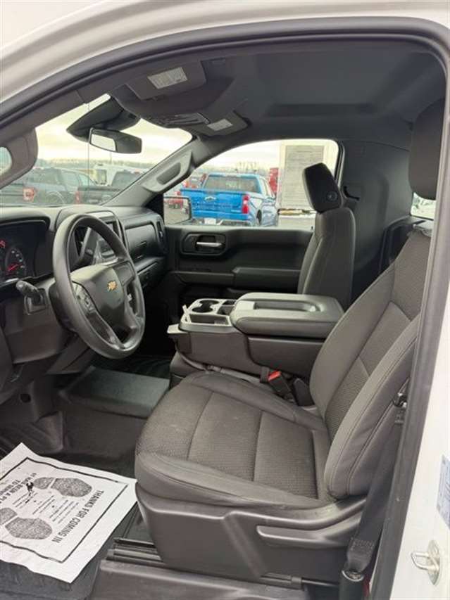 Summit White 2024 Chevrolet Silverado 1500 WT RWD 10-Speed Automatic EcoTec3 5.3L V8 **ONE OWNER**, **CLEAN VEHICLE HISTORY**, **LOCAL TRADE IN**, 10-Speed Automatic, Black Cloth, 170 Amp Alternator, 2 Speakers, 2-Speaker Audio System, 220 Amp Alternator, 3.23 Rear Axle Ratio, 3.42 Rear Axle Ratio, 3.5`` Monochromatic Display Driver Info Center, 4-Wheel Disc Brakes, 40/20/40 Front Split Bench Seat, ABS brakes, Air Conditioning, Auto High-beam Headlights, Automatic Emergency Braking, Auxiliary External Transmission Oil Cooler, Black (Semi-Gloss) Front Bumper, Black (Semi-Gloss) Rear Bumper, Bluetooth® For Phone, Brake assist, Chevrolet Connected Access Capable, Compass, Delay-off headlights, Driver door bin, Dual front impact airbags, Dual front side impact airbags, Electrical Steering Column Lock, Electronic Cruise Control, Electronic Stability Control, External Engine Oil Cooler, EZ Lift Power Lock & Release Tailgate, Following Distance Indicator, Forward Collision Alert, Front anti-roll bar, Front Center Armrest w/Storage, Front Chrome Bumper, Front Frame-Mounted Black Recovery Hooks, Front Pedestrian Braking, Front reading lights, Front wheel independent suspension, Fully automatic headlights, HD Rear Vision Camera, Heated door mirrors, Heated Power-Adjustable Outside Mirrors, Illuminated entry, Inside Rear-View Mirror w/Tilt, IntelliBeam Automatic High Beam On/Off, Lane Keep Assist w/Lane Departure Warning, Locking Tailgate, Low tire pressure warning, Manual Tailgate Function w/No EZ Lift, Manual Tilt Wheel Steering Column, Occupant sensing airbag, OnStar & Chevrolet Connected Services Capable, Outside temperature display, Overhead airbag, Overhead console, Panic alarm, Passenger door bin, Passenger vanity mirror, Power door mirrors, Power Front Windows w/Driver Express Up/Down, Power Front Windows w/Passenger Express Down, Power steering, Power windows, Preferred Equipment Group 1WT, Premium audio system: Chevrolet Infotainment 3, Radio data system, Radio: Chevrolet Infotainment 3 System, Rear Chrome Bumper, Rear reading lights, Rear step bumper, Remote Keyless Entry, Remote keyless entry, Rubberized-Vinyl Floor Covering, SiriusXM Delete, Solar Absorbing Tinted Glass, Speed-sensing steering, Standard Suspension Package, Standard Tailgate, Tachometer, Tilt steering wheel, Traction control, Trip computer, Variably intermittent wipers, Vinyl Seat Trim, Voltmeter, Wheels: 17`` x 8`` Bright Silver Painted Aluminum, Wheels: 17`` x 8`` Ultra Silver Painted Steel, Wi-Fi Hot Spot Capable, 10-Speed Automatic, Black Cloth.