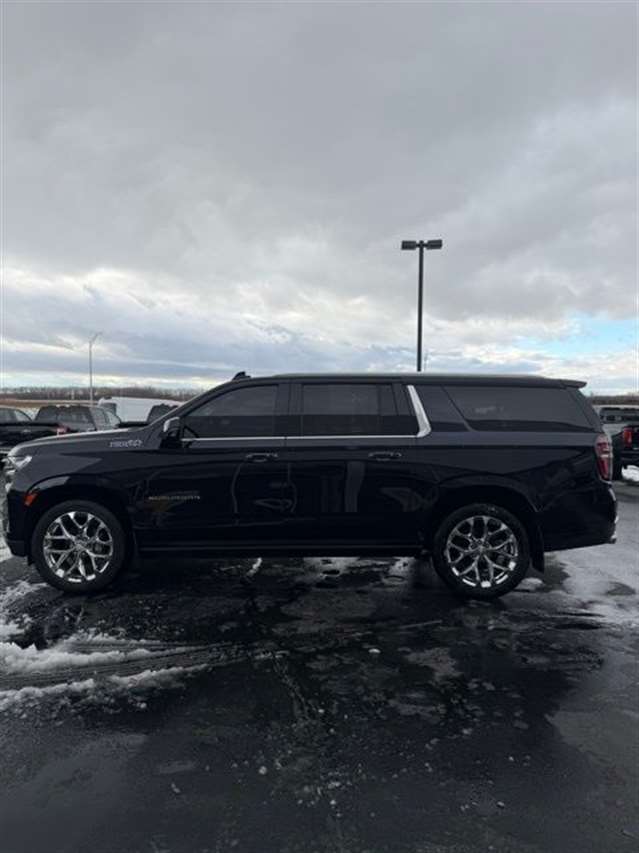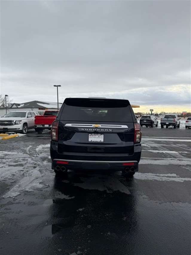 Midnight Blue Metallic 2022 Chevrolet Suburban High Country 4WD 10-Speed Automatic with Overdrive EcoTec3 6.2L V8 **ONE OWNER**, **CLEAN VEHICLE HISTORY**, **LOCAL TRADE IN**, Heated Leather Seating, Power Liftgate, Power Sunroof, OnStar, Satellite Radio, Leather Seats, Rear Bucket Seats.
