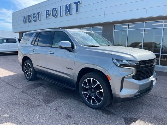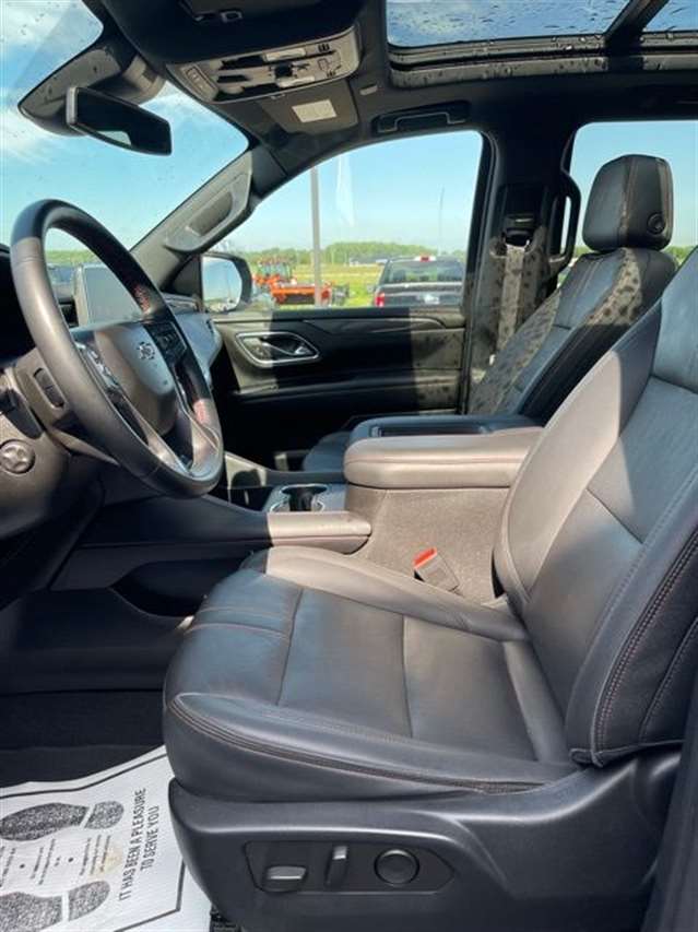 Sterling Gray Metallic 2023 Chevrolet Tahoe RST 4WD 10-Speed Automatic with Overdrive EcoTec3 5.3L V8 **ONE OWNER**, **CLEAN VEHICLE HISTORY**, Heated Leather Seating, Power Liftgate, Power Sunroof, OnStar, Satellite Radio, Leather Seats, 4WD, Jet Black/Victory Red Leather, 10-Way Power Driver & Passenger Seat Adjusters, 1st & 2nd Row Color-Keyed Carpeted Floor Mats, 2nd Row Pwr Release 60/40 Split-Folding Bench Seat, 3.23 Rear Axle Ratio, 3rd Row 60/40 Power-Folding Split-Bench Seat, 3rd row seats: split-bench, 4-Wheel Disc Brakes, 9 Speakers, ABS brakes, Adaptive Cruise Control, Air Conditioning, Alloy wheels, AM/FM radio: SiriusXM with 360L, Apple CarPlay/Android Auto, Auto High-beam Headlights, Auto-Dimming Inside Rear-View Mirror, Auto-dimming Rear-View mirror, Automatic temperature control, Bose 9-Speaker Stereo Audio System Feature, Brake assist, Bright Front & Rear Door Sill Plates, Bumpers: body-color, Color-Keyed Carpeting Floor Covering, Compass, Delay-off headlights, Driver & Front Outboard Passenger Airbags, Driver Alert Package, Driver door bin, Driver vanity mirror, Dual front impact airbags, Dual front side impact airbags, Dual-Pane Power Panoramic Sunroof, Electronic Stability Control, Emergency communication system: OnStar and Chevrolet connected services capable, Enhanced Automatic Emergency Braking, Enhanced Driver Information Center, Floor Console w/Storage Area, Four wheel independent suspension, Front anti-roll bar, Front Bucket Seats, Front Center Armrest, Front dual zone A/C, Front High-Back Reclining Bucket Seats, Front reading lights, Fully automatic headlights, Garage door transmitter, Hands-Free Rear Power Programmable Liftgate, HD Surround Vision, Heated 2nd Row Outboard Seats, Heated door mirrors, Heated Driver & Front Passenger Seats, Heated front seats, Heated Steering Wheel, Illuminated entry, Infotainment Display, Lane Change Alert w/Side Blind Zone Alert, LED Daytime Running Lamps, License Plate Front Mounting Package, Low tire pressure warning, Luxury Package, Memory seat, Memory Settings, Memory Settings for Driver, Molded Splash Guards, Navigation System, Not Equipped w/Wheel Locks (LPO), Occupant sensing airbag, Outside Heated Power-Adjustable Mirrors, Outside temperature display, Overhead airbag, Overhead console, Panic alarm, Passenger door bin, Passenger vanity mirror, Perforated Leather Seat Trim, Power door mirrors, Power driver seat, Power Liftgate, Power passenger seat, Power steering, Power Tilt & Telescopic Steering Column, Power windows, Preferred Equipment Group 1SP, Premium audio system: Chevrolet Infotainment 3 Premium, Premium Smooth Ride Suspension, Radio: Chevrolet Infotainment 3 Premium System, Rain sensing wipers, Rear air conditioning, Rear anti-roll bar, Rear Cross Traffic Alert, Rear Pedestrian Alert, Rear reading lights, Rear seat center armrest, Rear window defroster, Rear window wiper, Remote keyless entry, Remote Start, Roof rack: rails only, Security system, Set of 4 Wheel Locks (LPO), SiriusXM Radio w/360L, Speed control, Speed-sensing steering, Split folding rear seat, Spoiler, Steering wheel mounted audio controls, Tachometer, Telescoping steering wheel, Tilt steering wheel, Traction control, Trip computer, Universal Home Remote, Variably intermittent wipers, Voltmeter, Wheels: 22`` x 9`` Bright Machined, Wireless Charging, Wrapped Steering Wheel, 4WD, Jet Black/Victory Red Leather.