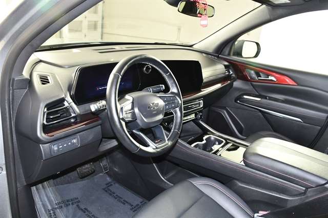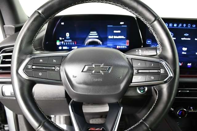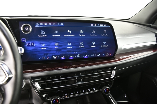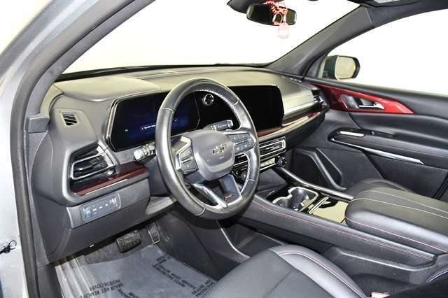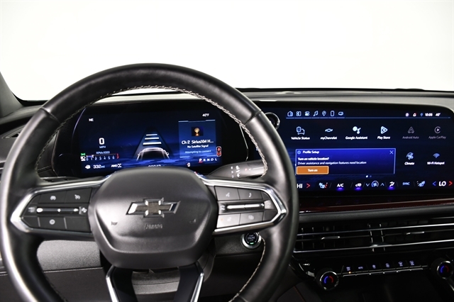Check out the rest of the great features on this car! Preferred Equipment Group 2Z7, AWD, 3rd row seats: split-bench, 4-Way Manual Front Passenger Seat Adjuster, 4-Wheel Disc Brakes, 6 Speakers, 6-Speaker Audio System Feature, 8-Way Power Driver Seat Adjuster, ABS brakes, Air Conditioning, Alloy wheels, AM/FM radio: SiriusXM with 360L, Apple CarPlay/Android Auto, Auto High-beam Headlights, Automatic temperature control, Brake assist, Child-Seat-Sensing Airbag, Compass, Delay-off headlights, Driver door bin, Driver vanity mirror, Dual front impact airbags, Dual front side impact airbags, Electronic Stability Control, Emergency communication system: OnStar, Evotex Seat Trim, Four wheel independent suspension, Front anti-roll bar, Front Bucket Seats, Front Center Armrest, Front dual zone A/C, Front reading lights, Fully automatic headlights, Heated door mirrors, Heated front seats, Heated steering wheel, Illuminated entry, Low tire pressure warning, Navigation System, Occupant sensing airbag, Outside temperature display, Overhead airbag, Overhead console, Panic alarm, Passenger door bin, Passenger vanity mirror, Power door mirrors, Power driver seat, Power Liftgate, Power steering, Power windows, Radio data system, Radio: : Audio System w/17.7 Diagonal Display, Rear air conditioning, Rear anti-roll bar, Rear reading lights, Rear window defroster, Rear window wiper, Remote keyless entry, Security system, SiriusXM with 360L Trial Subscription, Speed control, Speed-sensing steering, Spoiler, Steering wheel mounted audio controls, Tachometer, Telescoping steering wheel, Tilt steering wheel, Traction control, Trip computer, Turn signal indicator mirrors, Variably intermittent wipers, Voltmeter, and Wheels: : 18 High Gloss Black Painted Aluminum.