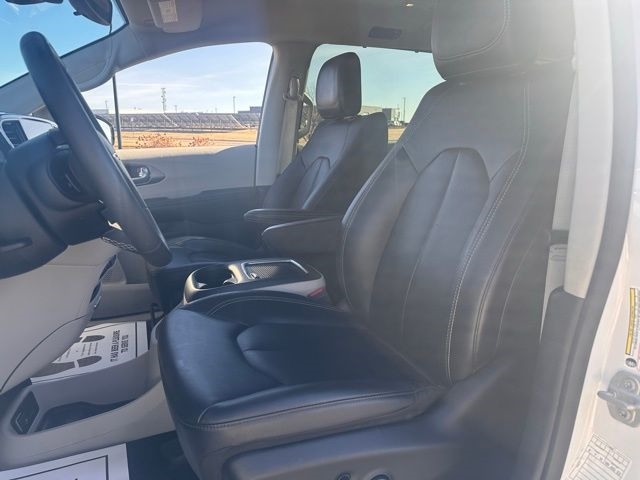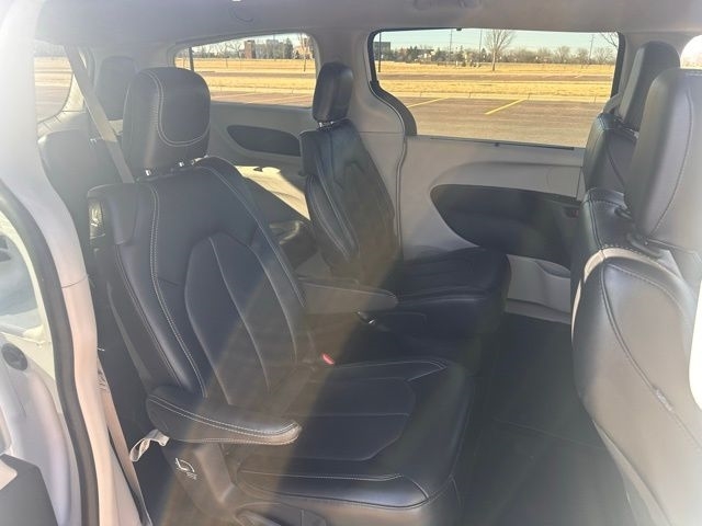 The exterior of this Pacifica Touring L exudes a refined and sophisticated presence, with its sleek White paint complemented by the elegant 17`` Aluminum Wheels. Step inside, and you`ll be greeted by a spacious and well-appointed cabin, featuring premium Caprice Leatherette Bucket Seats, a Heated Steering Wheel, and a stunning 10.1`` Touchscreen Display with Apple CarPlay and Android Auto integration.