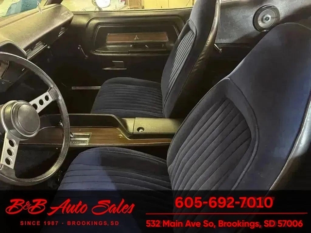*360 V8*Automatic* Power steering & brakesMECHANICAL- This Challenger has gone thru our inspection. THe 360 has around 50 miles on a rebuild according to previous owner. We repaired the wiring to blower motor. Tach does not work. EXTERIOR- The body is in good shape. It has had a repaint and has a nice shine. Does have some bubbling on the lower corner of drivers door and rear quarter . See the video for an up close inspection. Text Dirk at 605-695-7391 for running and driving video`sINTERIOR- The interior is in good shape. The dash does have coverlay. DIRK`S COMMENTS- With 38 years of experience I will give you my opinion of the Challenger. It is a great driving car and a factory 360 4bbl car so for 74 a great engine . THis car is an affordable driver that still will turn heads. UNDERNEATH- The underneath is solid , no rust areas that I seen. History- A car from North Dakota. TEST DRIVE- We personally test drive our vehicles so we know what they drive like. I have drove this one 10 miles and it drives good.Located at 324 W Main White,SD 57276BUY WITH CONFIDENCE as this 1974 Dodge Challenger has gone thru inspection and test drive. We personally work and drive these ourselves so can answer any questions you may have. We show you any issues with over 100 pictures and videos of a walk around, running and driving.VALUE- We price our vehicles to market value and try to be one of the best prices of vehicles in comparable condition. Our goal is to give you a good buy on a vehicle you are going to have fun with and enjoy. We do have a document fee but only $50 which is lower than most other dealers.LIKE IT OR RETURN IT- As being in business for 38 years we do not want to sell anybody a vehicle they do not want. As many of our vehicles are sold site unseen we will take the vehicle back and give a refund minus shipping and a restocking fee. You are responsible for the shipping both ways and a $1000 restocking fee. You have 3 days to notify us you are not happy with the vehicle and we will start the return process. Ask for more details.VIDEOS- Call, text or email for videos of driving the vehicle and of the engine running and accessories working. Text Dirk at 605-695-7391. Click here to apply for financing: Credit App Call or text Dirk at 605-695-7391 or Darren 605-695-9555 with any questions. B and B Auto Sales, 324 W Main White,SD 57276