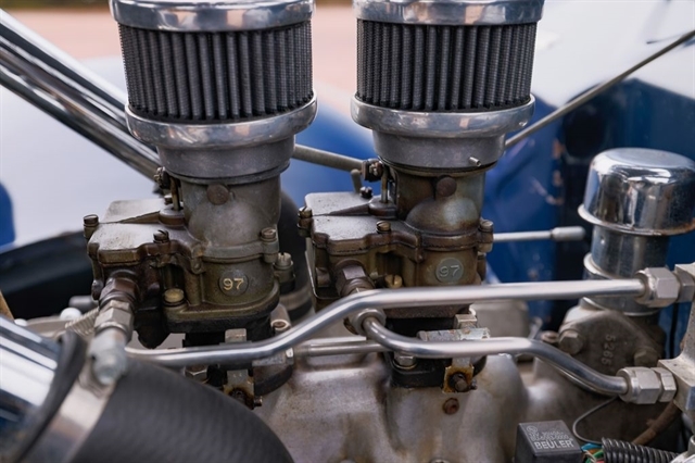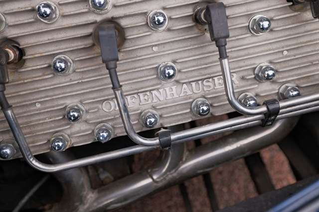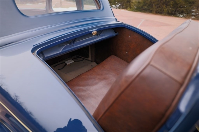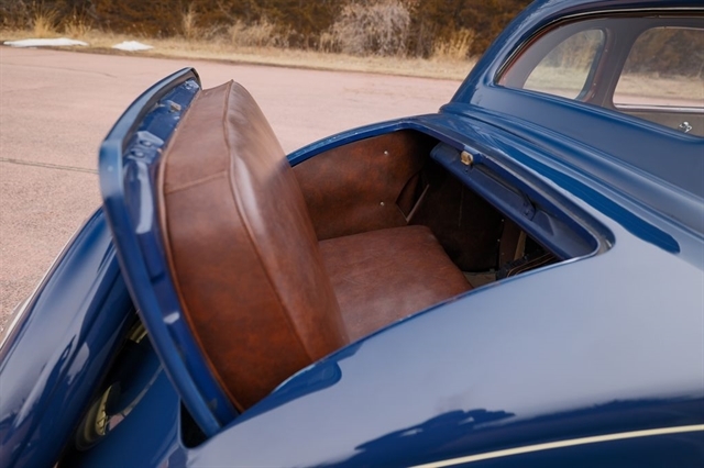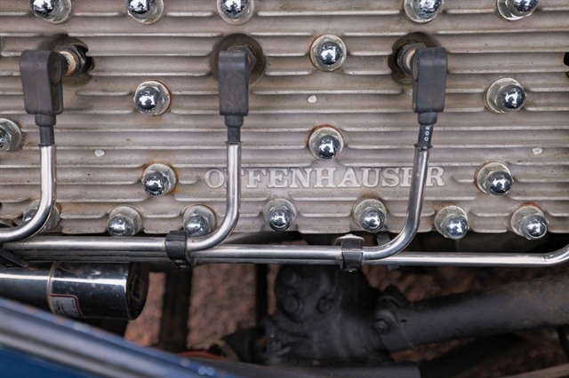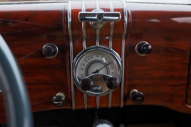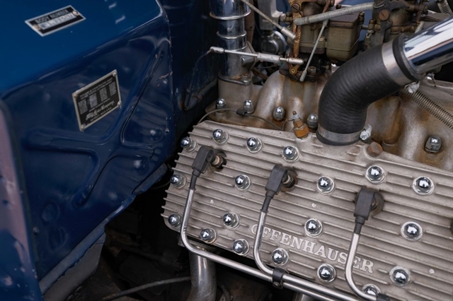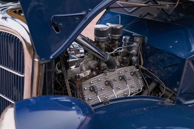 239ci Flathead V8 (59AB block) | Offenhauser aluminum heads | Dual carburetors | 4-speed manual | RWD | Washington Blue exterior | Tan mohair interior | Steel body | Hydraulic brakes | 16`` Kelsey-Hayes wire wheels | Wide whitewalls | Factory rumble seat | 11,369 miles showing