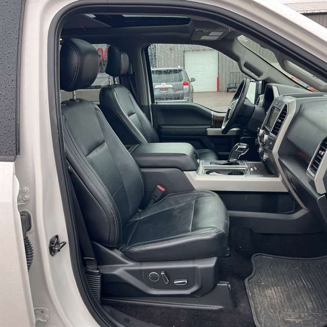 **ONE OWNER**, ***CLEAN CARFAX***, **NAVIGATION**, **LOCAL TRADE IN**, **LEATHER**, **MOONROOF**, BLUETOOTH, ALL BOOKS AND KEYS, **REMOTE START**, **Back-Up Camera**, **HEATED/COOLED SEATS**, **HEATED SEATS & STEERING WHEEL**, F-150 Lariat, 4D SuperCrew, 3.5L V6, 10-Speed Automatic, RWD, White Platinum Metallic Tri-Coat, Black w/Leather-Trimmed Bucket Seats, 110V/400W Outlet, 2nd Row Heated Seats, 4-Wheel Disc Brakes, 7 Speakers, ABS brakes, Adjustable pedals, Air Conditioning, AM/FM radio: SiriusXM, Auto High Beam w/Rain-Sensing Windshield Wipers, Automatic temperature control, Auxiliary Transmission Oil Cooler, BLIS Blind Spot Information System, Brake assist, Class IV Trailer Hitch Receiver, Compass, Electronic Stability Control, Engine Oil Cooler, Equipment Group 502A Luxury, Extended Range 36 Gallon Fuel Tank, Exterior Parking Camera Rear, Front dual zone A/C, Front fog lights, Fully automatic headlights, Heated door mirrors, Heated front seats, Heated Steering Wheel, Integrated Trailer Brake Controller, Lariat Chrome Appearance Package, Leather-Trimmed 40/20/40 Front Seat, Leather-Trimmed Bucket Seats, LED Side-Mirror Spotlights, Max Trailer Tow Package, Memory seat, Outside temperature display, Panic alarm, Pedal memory, Power door mirrors, Power driver seat, Power passenger seat, Power Tilt/Telescoping Steering Column w/Memory, Pro Trailer Backup Assist, Quad Beam LED Headlamps & Taillamps, Radio: Sony Single CD w/HD & SiriusXM Satellite, Remote keyless entry, Remote Start System w/Remote Tailgate Release, Reverse Sensing System, Security system, Speed control, Speed-sensing steering, Split folding rear seat, Steering wheel mounted audio controls, SYNC Connect, Tailgate Step w/Tailgate Lift Assist, Traction control, Twin Panel Moonroof, Universal Garage Door Opener, Upgraded Front Stabilizer Bar, Ventilated front seats, Voice-Activated Navigation, Wheels: 20`` Chrome-Like PVD.