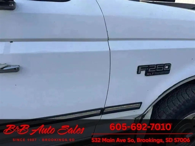 *** MECHANICAL- This F-250 has been thru our inspection.****EXTERIOR- The body is in good shape. It has . See the video for an up close inspection. Text Dirk at 605-695-7391 for running and driving video`sINTERIOR- The interior is in good shape.DIRK`S COMMENTS- With 38 years of experience I will give you my opinion of the F-250. It is aUNDERNEATH- The underneath is solid and has been detailed. MILEAGE- The odometer reads . I do not have any documentation as if actual and being sold exempt miles because of it`s age. History- A car fromTEST DRIVE- We personally test drive our vehicles so we know what they drive like. I have drove this one 10 miles and it drives good.Located at 324 W Main White,SD 57276BUY WITH CONFIDENCE as this 1996 Ford F-250 has gone thru inspection and test drive. We personally work and drive these ourselves so can answer any questions you may have. We show you any issues with over 100 pictures and videos of a walk around, running and driving.VALUE- We price our vehicles to market value and try to be one of the best prices of vehicles in comparable condition. Our goal is to give you a good buy on a vehicle you are going to have fun with and enjoy. We do have a document fee but only $50 which is lower than most other dealers.LIKE IT OR RETURN IT- As being in business for 38 years we do not want to sell anybody a vehicle they do not want. As many of our vehicles are sold site unseen we will take the vehicle back and give a refund minus shipping and a restocking fee. You are responsible for the shipping both ways and a $1000 restocking fee. You have 3 days to notify us you are not happy with the vehicle and we will start the return process. Ask for more details.VIDEOS- Call, text or email for videos of driving the vehicle and of the engine running and accessories working. Text Dirk at 605-695-7391. Click here to apply for financing: Credit App Call or text Dirk at 605-695-7391 or Darren 605-695-9555 with any questions. B and B Auto Sales, 324 W Main White,SD 57276