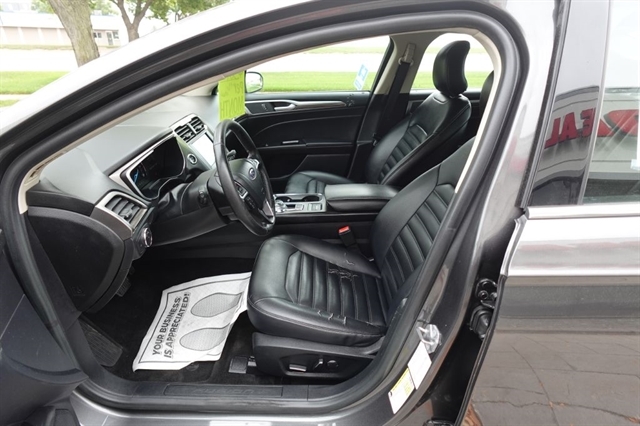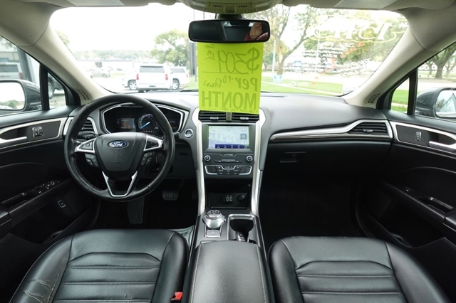 Check out this loaded up Fusion Hybrid with awesome options and how about 43 mpg City and 41 mpg Hwy for amazing fuel economy. The options include the SEL Package, Sunroof, Navigation, Rear View Camera, Leather Seats, Power Drivers Seat, Heated Seats, Remote Start, Alloy Wheels riding on New Tires, and of course a long list of Standard Power and Safety Features. We offer bank financing with excellent rates and terms right here at the dealership, stop and see why so many people will only purchase their used vehicles from Ideal Wheels with the original Ideal Advantage which provides no labor charge on most repairs. Don't forget to check out the complimentary Carfax.