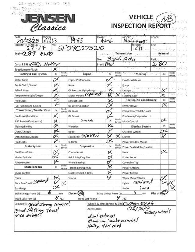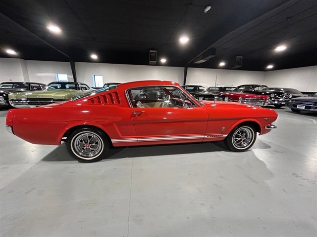 1965 Ford Mustang 2+2 Fastback Here is an exceptional laser straight 1965 Mustang 2+ 2 fastback that’s enjoyed a professional restoration some time ago and still presents extremely well. Powered by a 289 “Hypo “four-barrel V-8 mated to a Ford three-speed automatic transmission. Just a really strong running, good shifting transmission and a pleasure to drive. Look closely at all of the interior appointments, console, seats, carpeting, etc., etc., all are in like new condition. Power brakes, dual exhaust, aluminum intake, and riding on a set of white side wall tires mounted to OEM correct factory wheels.