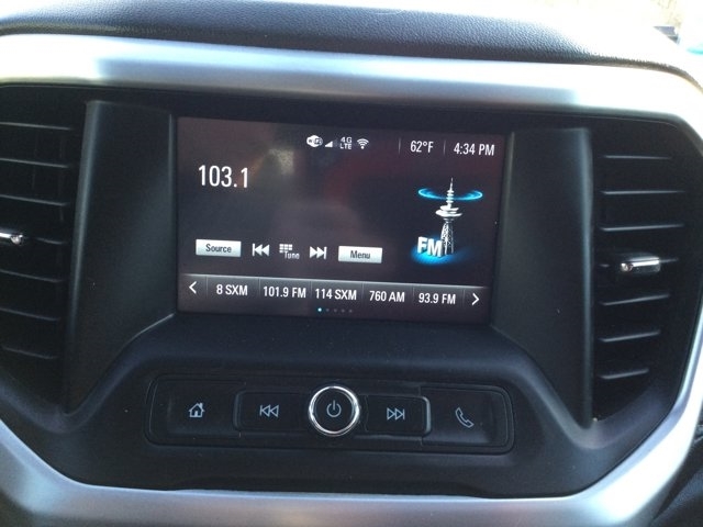 | AUDIO SYSTEM 7" DIAGONAL COLOR TOUCH SCREEN WITH GMC INFOTAINMENT SYSTEM AM/FM with USB ports auxiliary jack Bluetooth streaming audio for music and most phones Apple CarPlay Android Auto and voice command pass-through to phone (Includes (U2K) SiriusXM Satellite Radio. (STD) | ENGINE 3.6L V6 SIDI DOHC with Variable Valve Timing (VVT) (310 hp [231.1 kW] @ 6600 rpm 271 lb-ft of torque @ 5000 rpm [365.9 N-m]) |