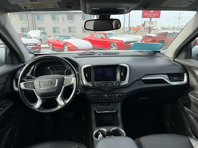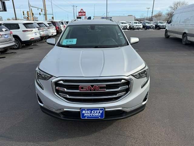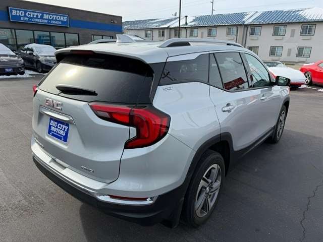 Zooming around town in this sleek and sporty silver 2019 GMC Terrain is an absolute thrill! With a peppy 1.5L Turbo DOHC 4-cylinder engine under the hood, you`ll feel the power as you hit the gas. The all-wheel-drive system ensures a smooth and controlled ride, perfect for any adventure you have in mind. The interior is not only comfortable but also loaded with convenient features like heated seats, dual-zone automatic climate control, and a leather-wrapped steering wheel. Stay connected on the go with the GMC 4G LTE and built-in Wi-Fi hotspot, perfect for streaming music or navigating your way through unfamiliar territory. Safety is a top priority with this Terrain, as it comes equipped with a rearview camera, stability control system, and a multitude of airbags to keep you and your passengers protected. And with the Teen Driver configurable feature, you can rest easy knowing that new drivers will be encouraged to practice safe driving habits.This car has been meticulously maintained, and you can review its history with the included Carfax report. So why wait? Come test drive this 2019 GMC Terrain today and experience the perfect combination of style, performance, and reliability! Visit Big City Motors to shop our great deals. You can call 605-338-8001 to schedule your test drive today.