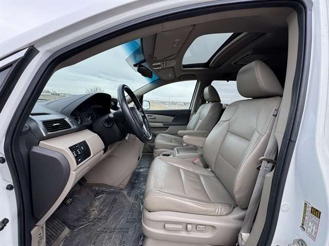 ***CLEAN CARFAX***, **LOCAL TRADE IN**, **REAR DVD**, **LEATHER**, **MOONROOF**, **Back-Up Camera**, **POWER LIFTGATE**, **HEATED SEATS**, Odyssey EX-L, 4D Passenger Van, 3.5L V6 SOHC i-VTEC 24V, FWD, White Diamond Pearl, Beige w/Leather Seat Trim, 17`` x 7`` Alloy Wheels, 4-Wheel Disc Brakes, 7 Speakers, ABS brakes, Air Conditioning, Automatic temperature control, Brake assist, Compass, Electronic Stability Control, Front dual zone A/C, Fully automatic headlights, Garage door transmitter: HomeLink, Heated door mirrors, Heated Front Bucket Seats, Leather Seat Trim, Outside temperature display, Panic alarm, Power door mirrors, Power driver seat, Power Liftgate, Power moonroof, Power passenger seat, Radio: AM/FM/CD-Library 2GB Memory Audio System, Rear air conditioning, Reclining 3rd row seat, Remote keyless entry, Security system, Speed control, Steering wheel mounted audio controls, Traction control, XM Radio.