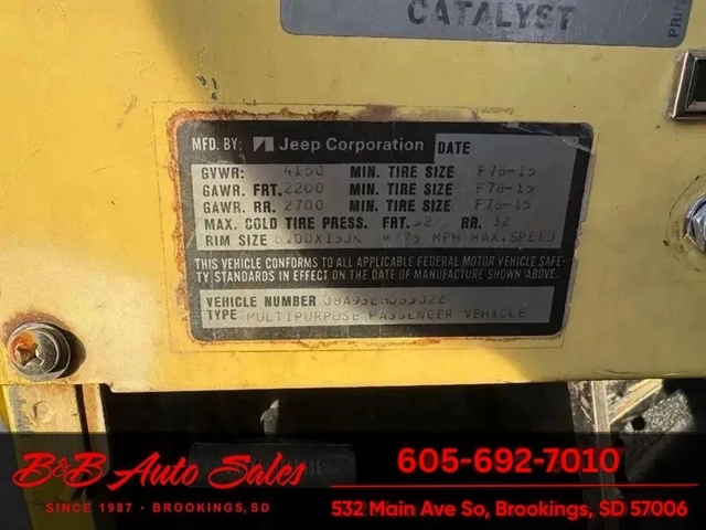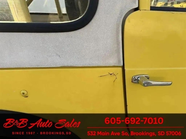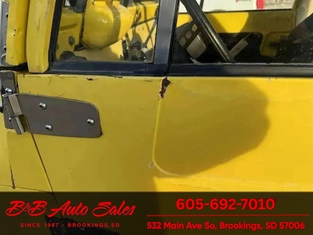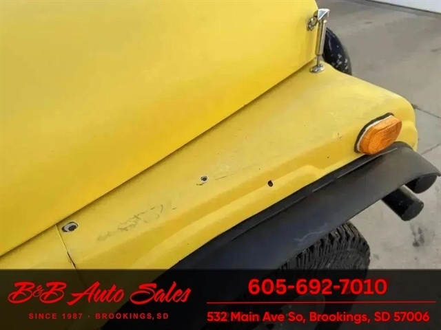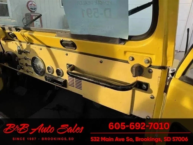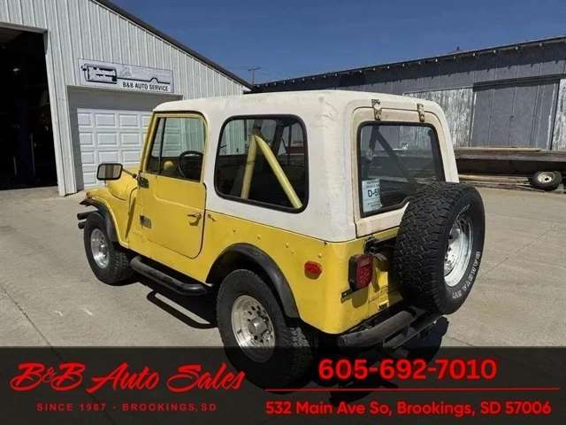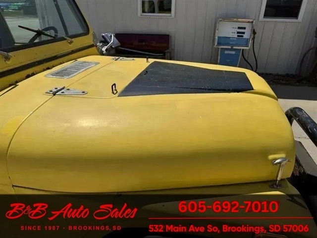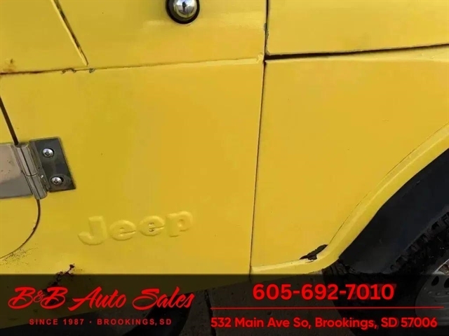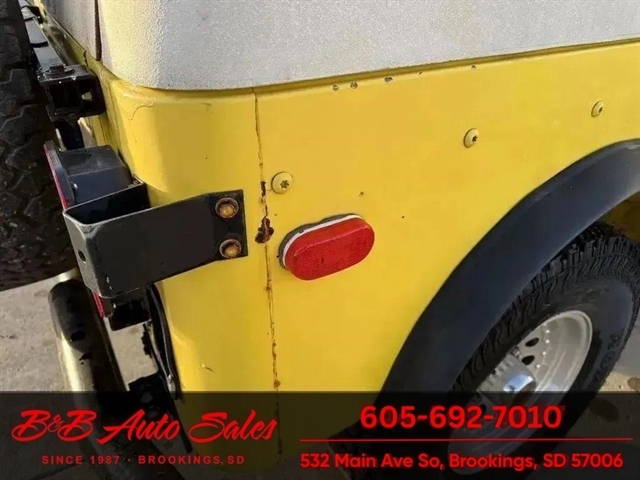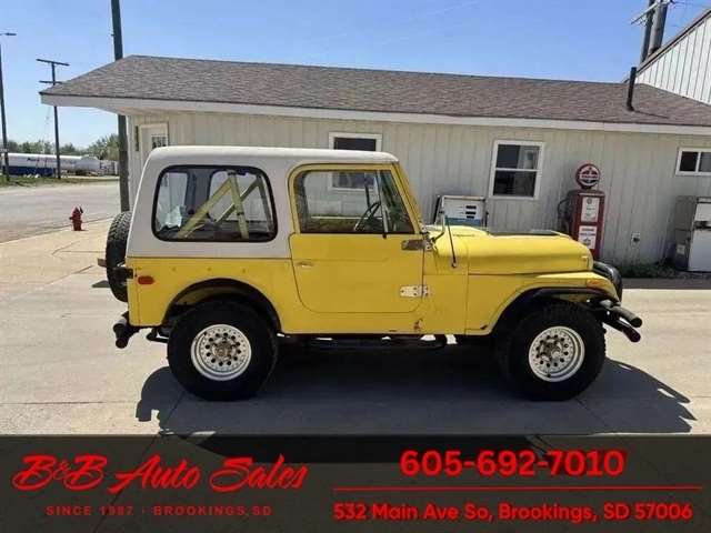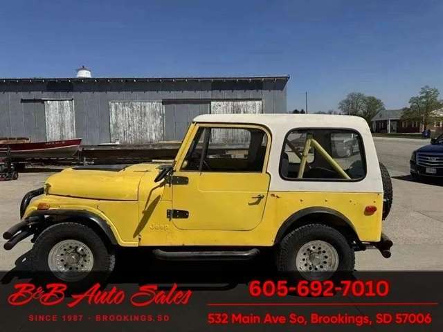 *304 V8*AUTOMATIC*HARD TOPMECHANICAL- This CJ7 has been thru our inspection. The horn does not work. *NEW FUEL PUMP*NEW BRAKE LINES, ROTOR,PADS,CALIPER*NEW SPEEDOMETER CLUSTER*NEW LIGHT SWITCHEXTERIOR- The body is in good shape. It has some small rust bubbles and scratches but a very solid CJ. See the video for an up close inspection. Text Dirk at 605-695-7391 for running and driving video`sINTERIOR- The interior is in good shape.DIRK`S COMMENTS- With 38 years of experience I will give you my opinion of the CJ7. It is a great running and driving Cj. These are fun to cruise around with the top off but with the 4 wd still can offroad or drive in the winter. I have one with a plow on and works great for moving snow. UNDERNEATH- The underneath is solid . History- A Jeep from western South Dakota. TEST DRIVE- We personally test drive our vehicles so we know what they drive like. I have drove this one 10 miles and it drives good.Located in White,SDBUY WITH CONFIDENCE as this 1978 Jeep CJ7 has gone thru inspection and test drive. We personally work and drive these ourselves so can answer any questions you may have. We show you any issues with over 100 pictures and videos of a walk around, running and driving.VALUE- We price our vehicles to market value and try to be one of the best prices of vehicles in comparable condition. Our goal is to give you a good buy on a vehicle you are going to have fun with and enjoy. We do have a document fee but only $50 which is lower than most other dealers.LIKE IT OR RETURN IT- As being in business for 37 years we do not want to sell anybody a vehicle they do not want. As many of our vehicles are sold site unseen we will take the vehicle back and give a refund minus shipping and a restocking fee. You are responsible for the shipping both ways and a $1000 restocking fee. You have 3 days to notify us you are not happy with the vehicle and we will start the return process. Ask for more details.VIDEOS- Call, text or email for videos of driving the vehicle and of the engine running and accessories working. Text Dirk at 605-695-7391. Click here to apply for financing: Credit App Call or text Dirk at 605-695-7391 or Darren 605-695-9555 with any questions. B and B Auto Sales, 324 W Main White,SD 57276