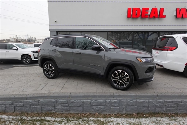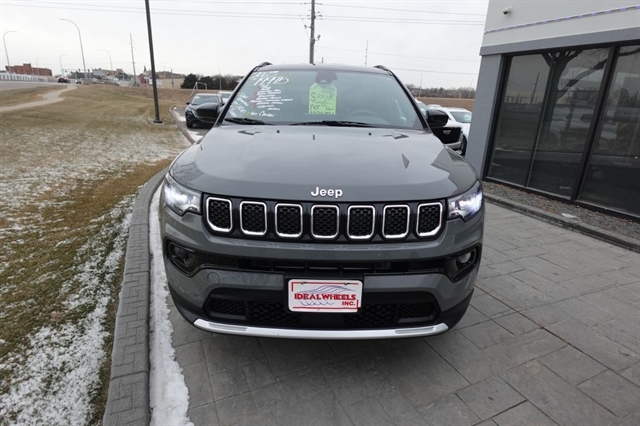 Here's the ever popular Jeep Compass just in and this bad boy comes in with great options and is ready for immediate delivery, stop down for a close look and a test drive. This 2023 Compass comes equipped with a dependable 2.4l 4cyl that produces a very impressive 184hp and mate that to the 9 speed Automatic Transmission and your going to get great performance and fuel economy. The Limited Package is going to provide with great options like Leather Seats; Power Drivers Seat, Heated Seats, Heated Steering Wheel, Rear View Camera, 10.1'' Touchscreen Display, 19''Alloy Weels, Body Colored Door Handles, Body Color Front and Rear Fascias, Leather Wrapped Steering Wheel, Keyless Enter-N-Go Passive Entry System and of course a long list of Standard Power and Safety Features. We offer bank financing with excellent rates and terms right here at the dealership, stop and see why so many people will only purchase their used vehicles from Ideal Wheels with the original Ideal Advantage which provides no labor charge on most repairs for as long as you own the vehicle. Don't forget to check out the complimentary Carfax