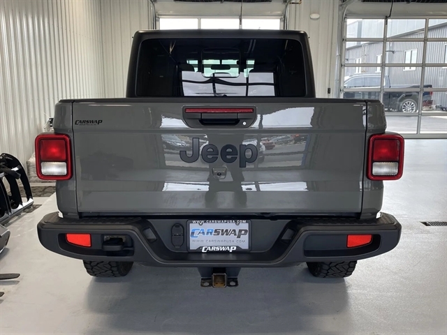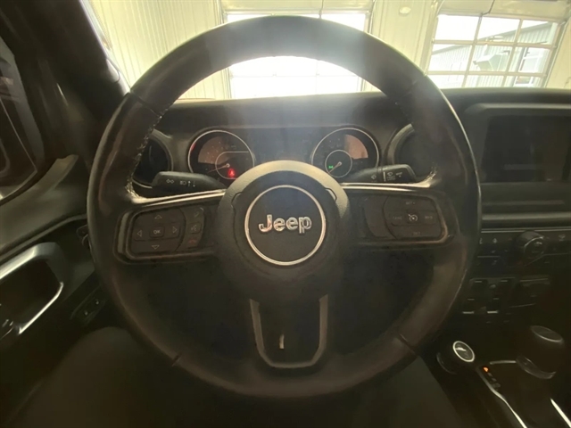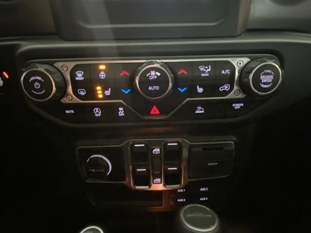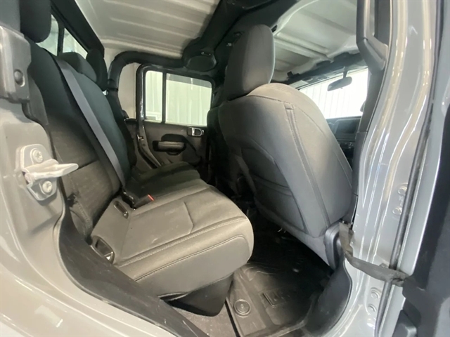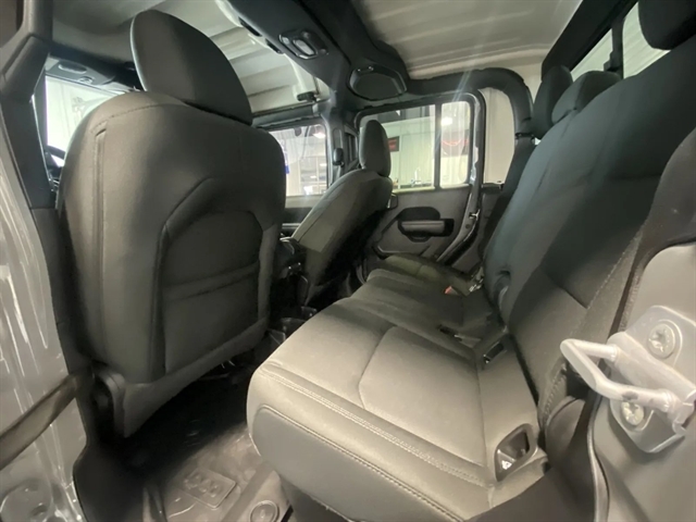 | Exterior@Painted Aluminum Alloy Wheels~Exterior@Soft Top Removable roof~Exterior@Safety Reverse Power windows~Exterior@Power Locking Tailgate~Exterior@Power Side mirror adjustments~Exterior@Heated Side mirrors~Exterior@Daytime running lights~Exterior@Front fog lights~Exterior@Approach Lamps Exterior entry lights~Exterior@Steel Spare wheel~Exterior@Variable Intermittent Front wipers~Exterior@Rear privacy glass~Exterior@Tire Pressure Monitoring System~Exterior@Powertrain Skid plate(s)~Exterior@Solar-tinted glass~Exterior@Front Driver And Passenger Tinted glass~Exterior@Full-size Spare tire size~Exterior@Auto On/off Headlights~Exterior@Rear Skid plate(s)~Exterior@Auto Delay Off Headlights~Exterior@Pickup bed light~Exterior@Black Rear bumper color~Exterior@Black Window trim~Exterior@Black Door handle color~Exterior@Black Mirror color~Exterior@Manual Folding Side mirror adjustments~Exterior@Black Grille color~Exterior@Black Front bumper color~Entertainment and Technology@Apple CarPlay Smartphone integration~Entertainment and Technology@Android Auto Smartphone integration~Entertainment and Technology@Bluetooth Wireless data link~Entertainment and Technology@Voice Operated Hands-free phone call integration~Entertainment and Technology@Voice Operated Radio~Entertainment and Technology@Bluetooth Auxiliary audio input~Entertainment and Technology@8 Total speakers~Entertainment and Technology@7 In. Infotainment screen size~Entertainment and Technology@Touch Screen Display Radio~Entertainment and Technology@With Read Function Electronic messaging assistance~Entertainment and Technology@Voice Operated Electronic messaging assistance~Entertainment and Technology@SiriusXM Satellite radio~Entertainment and Technology@USB Auxiliary audio input~Entertainment and Technology@IPod/iPhone Auxiliary audio input~Entertainment and Technology@Uconnect Infotainment~Entertainment and Technology@Jack Auxiliary audio input~Entertainment and Technology@Memory Card Slot Auxiliary audio input~Entertainment and Technology@Roadside Assistance Driver assistance app~Entertainment and Technology@AM/FM Radio~Entertainment and Technology@Radio data system~Entertainment and Technology@Speed sensitive volume control~Interior@Leather Steering wheel trim~Interior@Automatic Climate Control Front air conditioning~Interior@Dual Front air conditioning zones~Interior@Push-button start~Interior@Garage Door Opener Universal remote transmitter~Interior@Cruise control~Interior@Cloth Upholstery~Interior@Bucket Front seat~Interior@Keyless Entry Multi-function remote~Interior@Rubber/vinyl Floor mat material~Interior@60-40 Split Bench Rear seat~Interior@Air filtration~Interior@Customizable instrument cluster~Interior@Footwell lights~Interior@7 In. Instrument cluster screen size~Interior@Folds Up Rear seat folding~Interior@Split Rear seat folding~Interior@USB Front Power outlet(s)~Interior@USB-C Front Power outlet(s)~Interior@12V Front Power outlet(s)~Interior@Tilt And Telescopic Steering wheel~Interior@Second Row Rear vents~Interior@Rear Floor mats~Interior@Front Floor mats~Interior@Illuminated Cupholders~Interior@Lumbar Driver seat manual adjustments~Interior@Multi-function display~Interior@Front Console With Armrest And Storage Center console~Interior@Power steering~Interior@Compass~Interior@External temperature display~Interior@MPG Fuel economy display~Interior@Range Fuel economy display~Interior@6 Driver seat manual adjustments~Interior@Front Reading lights~Interior@Tachometer Gauge~Interior@Door Courtesy lights~Interior@Manual Day/night Rearview mirror~Interior@Rear Reading lights~Interior@Front Cupholders~Interior@Maintenance Due Warnings and reminders~Interior@Dual Illuminating Vanity mirrors~Interior@Rear Cupholders~Interior@Locking Center console~Interior@Simulated Alloy Door trim~Interior@2 One-touch windows~Interior@Panic Alarm Multi-function remote~Interior@Audio Steering wheel mounted controls~Interior@Carpet Floor material~Interior@Cruise Control Steering wheel mounted controls~Interior@Phone Steering wheel mounted controls~Interior@Multi-function Steering wheel mounted controls~Interior@Front Seatback Storage~Interior@Voice Control Steering wheel mounted controls~Performance@Class IV Trailer hitch~Performance@Auto start/stop~Performance@Rear Limited slip differential~Performance@4-pin Trailer wiring~Performance@7-pin Trailer wiring~Performance@Part Time 4WD~Performance@Class II Trailer hitch~Performance@Heavy Duty Tuned suspension~Performance@Manual Hi-lo 4WD selector~Performance@Auxiliary oil cooler~Performance@AGM Battery~Performance@Front Tow hooks~Performance@Rear Tow hooks~Performance@Drive mode selector~Performance@650 CCA Battery rating~Performance@Multi-link Front suspension~Performance@180 Amps Alternator~Performance@Solid Live Axle Rear suspension classification~Performance@Solid Live Axle Front suspension classification~Performance@Trailing Arms Rear suspension~Performance@Monotube Front shock~Performance@Monotube Rear shock~Performance@Front stabilizer bar~Performance@Rear stabilizer bar~Performance@Battery saver~Performance@Tie-down Anchors Pickup bed cargo management~Safety and Security@Rearview Camera system~Safety and Security@Front Side airbags~Safety and Security@4-wheel ABS~Safety and Security@Auto-locking Power door locks~Safety and Security@Trailer stability control~Safety and Security@Ventilated Disc Rear brake~Safety and Security@Alarm Anti-theft system~Safety and Security@Braking assist~Safety and Security@Hill holder control~Safety and Security@Ventilated Disc Front brake~Safety and Security@Dual Front airbags~Safety and Security@Vehicle Immobilizer Anti-theft system~Safety and Security@Power brakes~Safety and Security@LATCH System Child seat anchors~Safety and Security@Electronic brakeforce distribution~Safety and Security@Stability control~Safety and Security@Traction control~Safety and Security@In Dash Rearview monitor~Safety and Security@Occupant Sensing Passenger Airbag deactivation~Safety and Sec