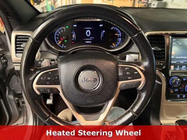 This mid-size suv keeps you comfortable with Auto Climate. The leather seats in this mid-size suv are a must for buyers looking for comfort, durability, and style. The state of the art park assist system will guide you easily into any spot. This 2017 Jeep Grand Cherokee features a hands-free Bluetooth phone system. Start this Jeep Grand Cherokee from inside with remote start. Keep your hands warm all winter with a heated steering wheel in it . An off-road package is equipped on this vehicle. See what`s behind you with the back up camera on this 2017 Jeep Grand Cherokee . This mid-size suv gleams with an elegant silver clear coated finish. When you encounter slick or muddy roads, you can engage the four wheel drive on the Jeep Grand Cherokee and drive with confidence. This model has a V6, 3.6L high output engine. Quickly unlock this vehicle with keyless entry.