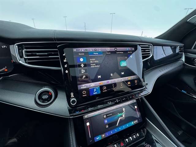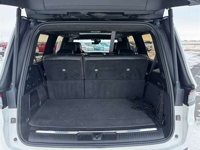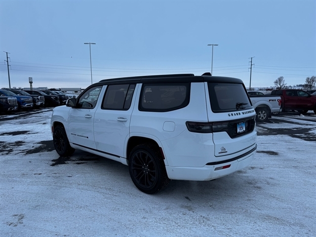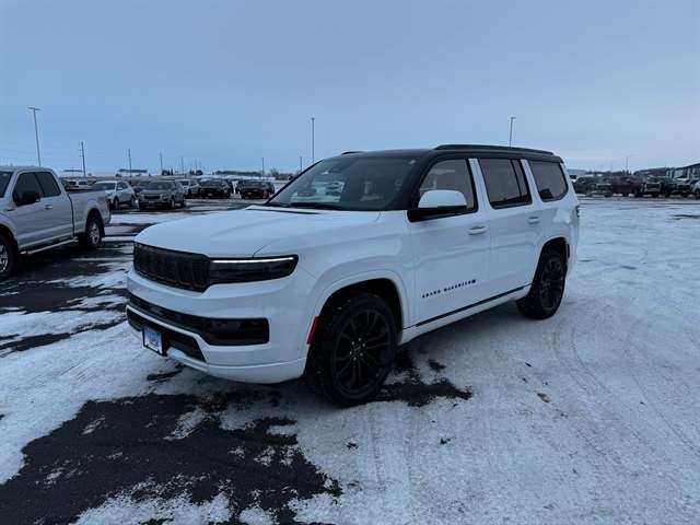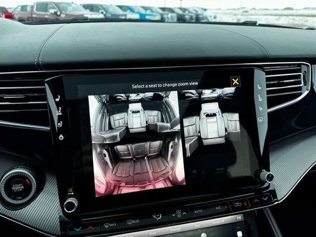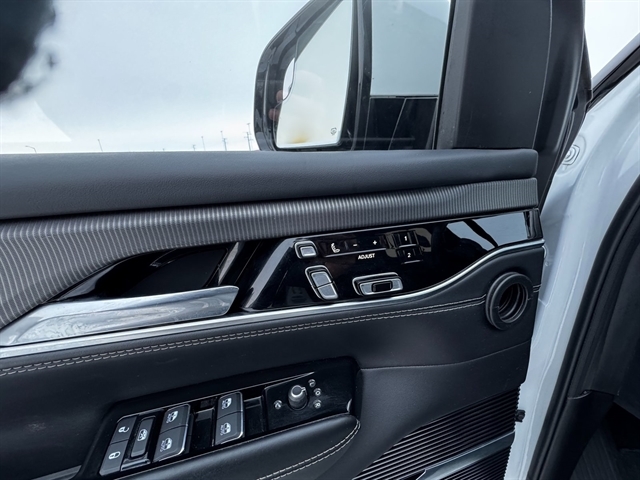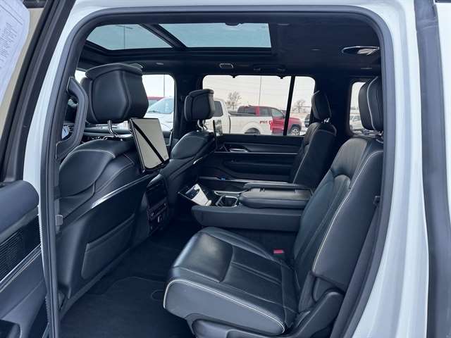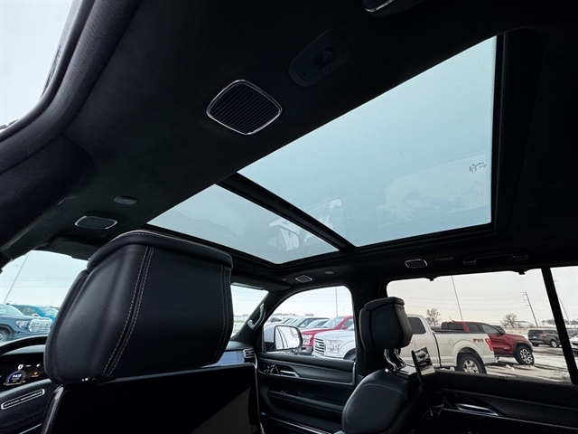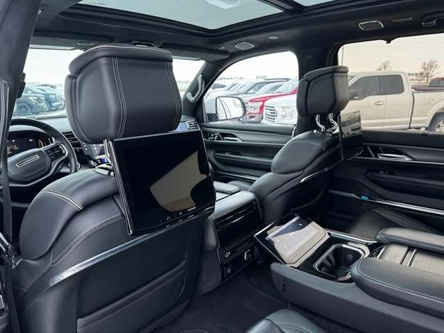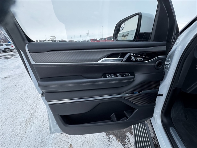 Convenience Group III (Active Driving Assist System, Advanced Security Alert System, Interior Rear Facing Camera, Intersection Collision Assist System, and Night Vision/Pedestrian-Animal Detection), Obsidian Appearance Package, Quick Order Package 23T Obsidian (23 Speaker McIntosh Reference Audio System, Adjustable Roof Rail Crossbars, Black Interior Accents, Black Roof, Cargo Cover, Front Console Cooler, Front Passenger Interactive Display, Gloss Black Upper & Lower DLO Molding, Piano Black Exterior Accents, Premium Tinted Glass, Ventilated Rear Seats, and Wheels: 22`` x 9.0`` Tinted Polished w/Black Insert), Rear Seat Video Group 1 (Amazon Fire TV Built-In, Seatback Video Screens, and Video USB Port), Two Tone Paint Group, 19 Speakers, 3.92 Rear Axle Ratio, 3rd row seats: bench, 4-Wheel Disc Brakes, ABS brakes, Adjustable pedals, Air Conditioning, Alloy wheels, AM/FM radio: SiriusXM with 360L, Anti-whiplash front head restraints, Audio memory, Auto High-beam Headlights, Auto-dimming door mirrors, Auto-dimming Rear-View mirror, Auto-leveling suspension, Automatic temperature control, Brake assist, Bumpers: body-color, Compass, Delay-off headlights, Driver door bin, Driver vanity mirror, Driver`s Seat Mounted Armrest, Dual front impact airbags, Dual front side impact airbags, Electronic Stability Control, Four wheel independent suspension, Front anti-roll bar, Front Bucket Seats, Front Center Armrest w/Storage, Front dual zone A/C, Front fog lights, Front reading lights, Fully automatic headlights, Garage door transmitter, Genuine wood console insert, Genuine wood dashboard insert, Genuine wood door panel insert, Heads-Up Display, Heated door mirrors, Heated front seats, Heated rear seats, Heated steering wheel, Illuminated entry, Knee airbag, Leather steering wheel, Leather Trimmed Bucket Seats, Low tire pressure warning, Memory seat, Navigation System, Normal Duty Suspension, Occupant sensing airbag, Outside temperature display, Overhead airbag, Overhead console, Panic alarm, Passenger door bin, Passenger seat mounted armrest, Passenger vanity mirror, Pedal memory, Power adjustable front head restraints, Power door mirrors, Power driver seat, Power Liftgate, Power moonroof, Power passenger seat, Power steering, Power windows, Radio data system, Radio: Uconnect 5 Nav w/12.0`` Display, Rain sensing wipers, Rear air conditioning, Rear anti-roll bar, Rear dual zone A/C, Rear reading lights, Rear seat center armrest, Rear window defroster, Rear window wiper, Reclining 3rd row seat, Remote keyless entry, Security system, Speed control, Speed-sensing steering, Speed-Sensitive Wipers, Split folding rear seat, Steering wheel memory, Steering wheel mounted audio controls, Tachometer, Telescoping steering wheel, Tilt steering wheel, Traction control, Trip computer, Turn signal indicator mirrors, Variably intermittent wipers, Ventilated front seats, Voltmeter, and Wheels: 22`` x 9.0`` Premium 1 Aluminum.
