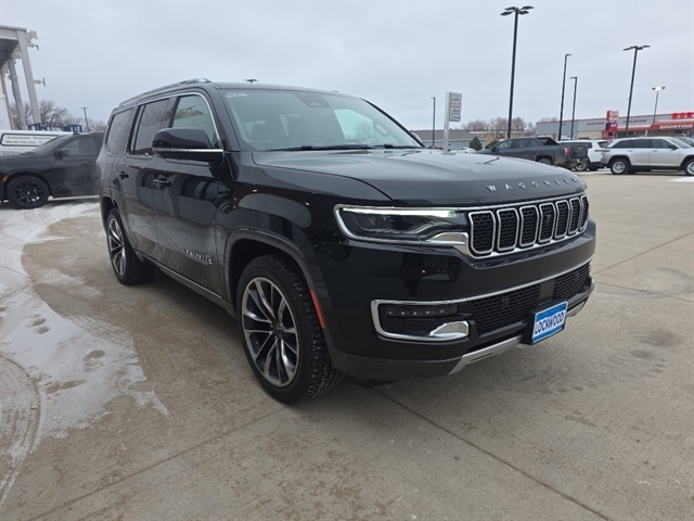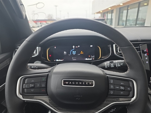 This vehicle offers Android Auto for seamless smartphone integration. It has auto-adjust speed for safe following. Bluetooth technology is built into this vehicle, keeping your hands on the steering wheel and your focus on the road. The installed navigation system will keep you on the right path. This unit's Forward Collision Warning system alerts the driver to potential front-end collisions, enhancing safety. Start the Jeep Wagoneer from inside with remote start. See what's behind you with the back up camera on this 2022 Jeep Wagoneer . The leather seats in this 1/2 ton suv are a must for buyers looking for comfort, durability, and style. Apple CarPlay: Seamless smartphone integration for this model - stay connected and entertained on the go! This 2022 Jeep Wagoneer is pure luxury with a heated steering wheel. This Jeep Wagoneer has a V8, 5.7L high output engine. It has an elegant black exterior finish.