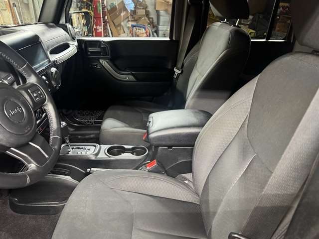 This vehicle has satellite radio capabilities. It features a hands-free Bluetooth phone system. Set the temperature exactly where you are most comfortable in it. The fan speed and temperature will automatically adjust to maintain your preferred zone climate. This unit projects refinement with a racy metallic gray exterior. With the keyless entry system on the vehicle you can pop the trunk without dropping your bags from the store. When you encounter slick or muddy roads, you can engage the four wheel drive on this mid-size suv and drive with confidence. This model has a V6, 3.6L high output engine. This 2017 Jeep Wrangler has fog lights for all weather conditions. This mid-size suv is equipped with a gasoline engine. Easily set your speed in the vehicle with a state of the art cruise control system. Increase or decrease velocity with the touch of a button. It features heated side mirrors keeping the ice off and your vision spot-on.
