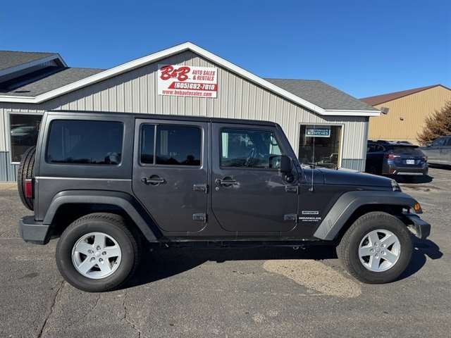 2017 Jeep Wrangler Sport 4WD — Brookings SD — Best Price Looking for a rugged, dependable 2017 Jeep Wrangler Sport with 4WD in Brookings SD? This V6, 3.6L gasoline Jeep Wrangler delivers power, off-road capability, and classic Jeep styling at the best price in the area. Ideal for weekend adventures, daily commuting, or seasonal travel, the Jeep Wrangler's 3.6L Pentastar V6 provides responsive acceleration and confident towing when needed. Comfort and convenience features include Hands Free Bluetooth for safer calls and music streaming, plus Satellite Radio for endless entertainment on long drives. The durable interior is built for life outdoors, with easy-to-clean surfaces and seating that balances comfort with functionality. Removable top and doors (depending on configuration) let you embrace open-air driving, while the solid 4WD system handles snow, mud, and gravel with confidence. This pre-owned Jeep has been inspected to ensure reliable performance and safety. Located in Brookings SD, this Jeep Wrangler Sport represents exceptional value — we're offering the best price in the region for a well-maintained, V6-powered 2017 model. Contact us today to schedule a test drive, request vehicle history, or learn about financing options. Drive home a capable Jeep Wrangler Sport at a price that's hard to beat.