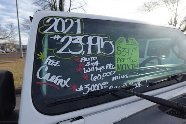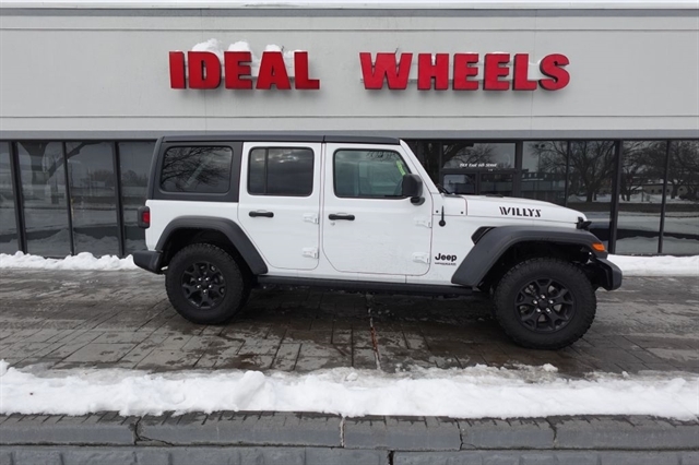 Here's the all new next generation 2021 Jeep Wrangler just in and priced to sell for only 23,995.00 and that is well below Book Value that comes in at 33,875.00, so here's a great opportunity to save thousands of dollars off the price of a new one and your neighbors and co workers won't know the difference. The options include the Willys Package, 4x4, Automatic Transmission, Rear View Camera,17'' Black Alloy Wheels, Keyless Entry, and of course all of the Standard Safety Features. We offer bank financing with excellent rates and terms right here at the dealership, stop and see why so many people will only purchase their used vehicles from Ideal Wheels with the original Ideal Advantage which provides no labor charge on most repairs. Don't forget to check out the complimentary Carfax.