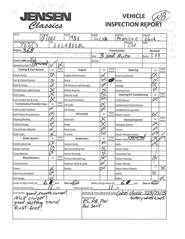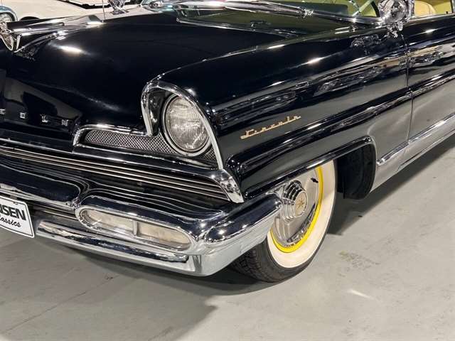 1956 Lincoln Premiere Two-Door Hardtop It’s easy to see why the Premiere hardtop was able to win an award from the Industrial Designers Institute for excellence in automotive design. Outside of rear funder medallions and fancier wheel covers, it was difficult to tell the Premiere from the less costly Capri. Like all Ford Motor Coproducts in 1956, the Premiere had a lot of safety features. Improved door latches, deep-dish steering wheel, and heavily padded seatbacks and door panels. Power windows and four-way power front seat were standard. Everywhere you look the car is aesthetically pleasing ….not just the award-winning design but also the overall condition of our 1956 Lincoln Premiere two-door hardtop. Restoration that’s been done to the nines. Rust free laser straight gorgeous black paint, two tone correct interior and drives as good as it looks. Power steering, power brakes, power windows, power seat, and riding on a set of Coker Classic wide white wall tires. In addition to the cosmetic restoration, our premiere has undergone a mechanical refresh as well, including rebuilt cooling system with radiator, new water pump, new hoses and belts. The brakes have been rebuilt, the carburetor rebuilt as well, gas tank boiled out and coated, new shocks, new thermostat, master cylinder with brake booster, new seals, new battery, new fuel pump and more.