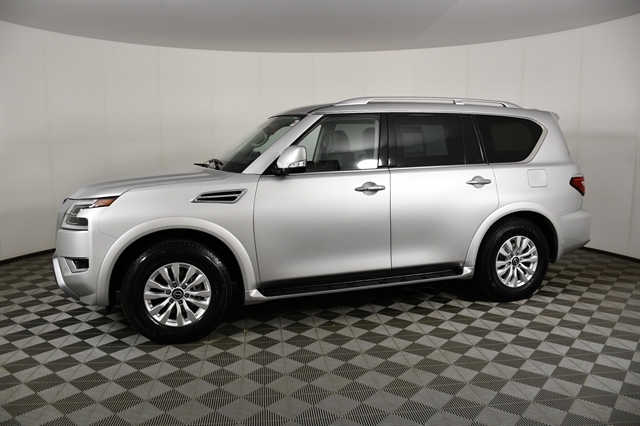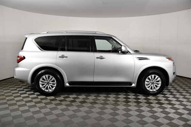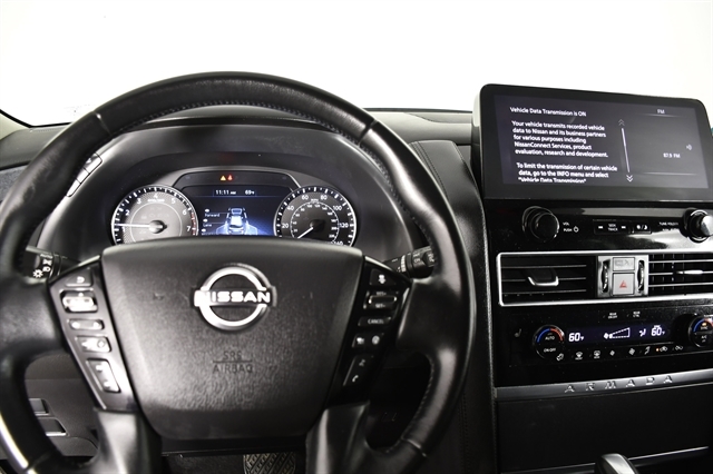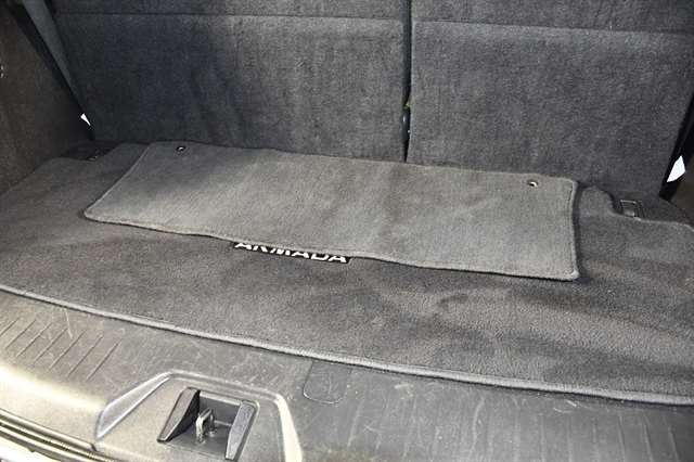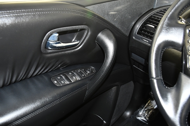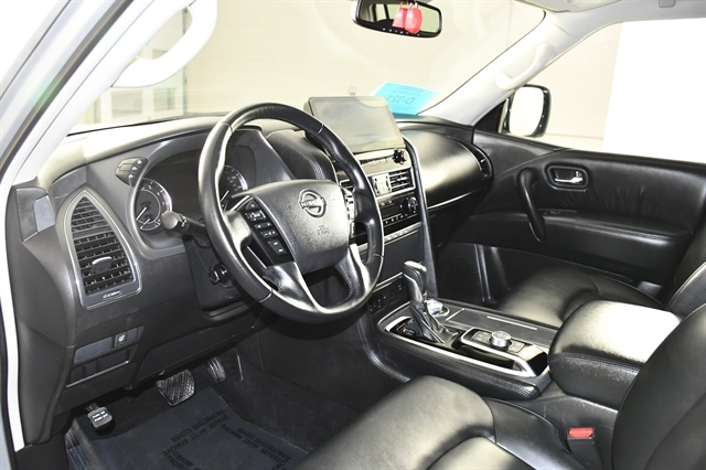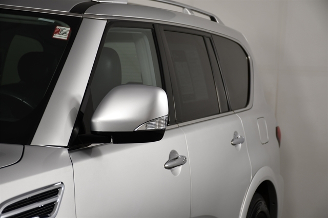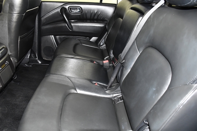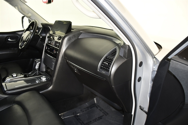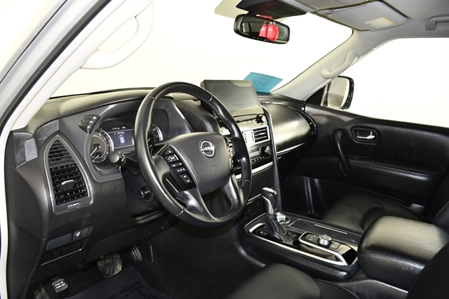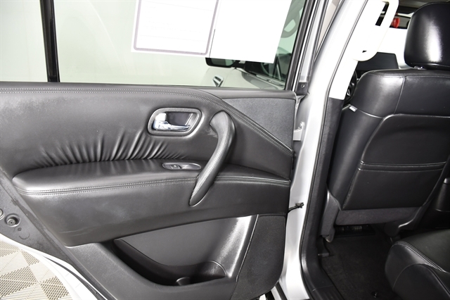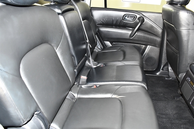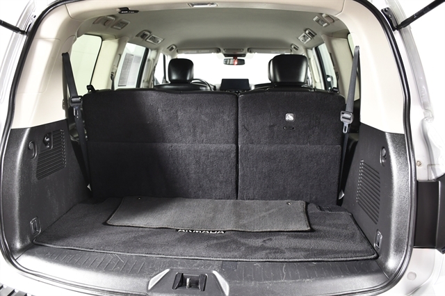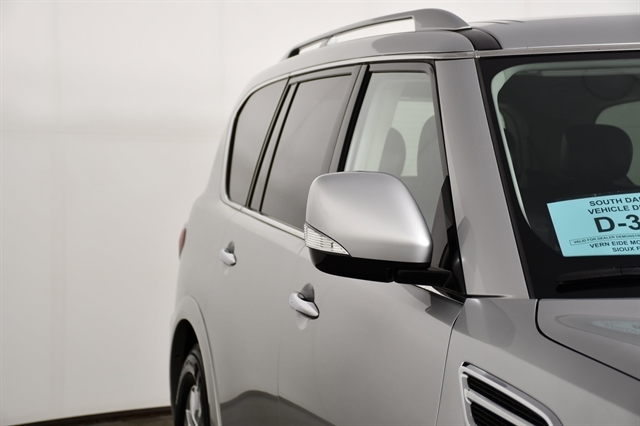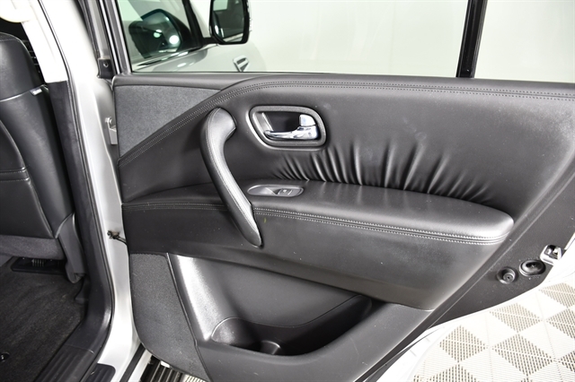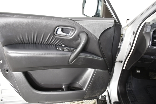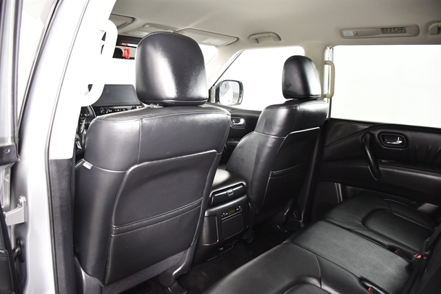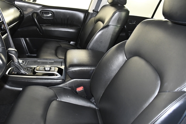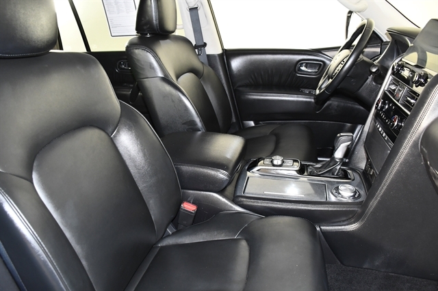 Check out the rest of the great features on this car! 4WD, 18 x 8J Alloy Wheels, 2.937 Axle Ratio, 3rd Row Carpeted Floor Mats - Bench Seat, 3rd row seats: split-bench, 4-Wheel Disc Brakes, 6 Speakers, ABS brakes, Air Conditioning, Alloy wheels, AM/FM radio: SiriusXM, Anti-whiplash front head restraints, Auto High-beam Headlights, Auto tilt-away steering wheel, Auto-dimming Rear-View mirror, Auto-leveling suspension, Automatic temperature control, Brake assist, Bumpers: body-color, Delay-off headlights, Driver door bin, Driver vanity mirror, Dual front impact airbags, Dual front side impact airbags, Electronic Stability Control, Emergency communication system: NissanConnect Services, Exterior Parking Camera Rear, Four wheel independent suspension, Front anti-roll bar, Front Bucket Seats, Front Center Armrest, Front dual zone A/C, Front fog lights, Front reading lights, Fully automatic headlights, Garage door transmitter: HomeLink, Heated door mirrors, Heated Front Bucket Seats, Heated front seats, Illuminated entry, Knee airbag, Leather Shift Knob, Leather steering wheel, Leatherette Seat Trim, Low tire pressure warning, Navigation System, Occupant sensing airbag, Outside temperature display, Overhead airbag, Overhead console, Panic alarm, Passenger door bin, Passenger vanity mirror, Power door mirrors, Power driver seat, Power passenger seat, Power steering, Power windows, Radio: NissanConnect w/SiriusXM, Rear air conditioning, Rear anti-roll bar, Rear reading lights, Rear seat center armrest, Rear window defroster, Rear window wiper, Reclining 3rd row seat, Remote keyless entry, Security system, Speed control, Speed-sensing steering, Speed-Sensitive Wipers, Split folding rear seat, Spoiler, Steering wheel mounted audio controls, Tachometer, Telescoping steering wheel, Tilt steering wheel, Traction control, Trip computer, Turn signal indicator mirrors, Variably intermittent wipers, and Voltmeter.
