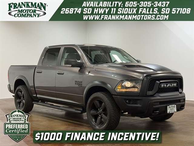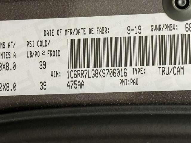Granite Crystal Metallic Clearcoat 2019 Ram 1500 Classic Warlock 4WD 8-Speed Automatic 3.6L V6 24V VVT 1-Yr SiriusXM Guardian Trial, 4x4 Decal, 4x4 Flat Black Badge, 8.4`` Touchscreen Display, Air Conditioning ATC w/Dual Zone Control, Apple CarPlay, Auto-Dimming Exterior Mirrors, Auto-Dimming Rear-View Mirror, Bi-Function Halogen Projector Headlamps, Black Exterior Truck Badging, Black Grille w/RAM Lettering, Black Headlamp Bezels, Black Headlamp Filler Panel, Black Powder Coated Front Bumper, Black Powder Coated Rear Bumper, Black RAM Head Tailgate Badge, Black Wheel Flares, Cloth Bucket Seats, Cluster 7.0`` TFT Color Display, Electronics Group, Exterior Mirrors Courtesy Lamps, Exterior Mirrors w/Supplemental Signals, Front LED Fog Lamps, Front Wheel Well Liners, Glove Box Lamp, Google Android Auto, GPS Antenna Input, HD Radio, Heated Front Seats, Heated Seats & Wheel Group, Heated Steering Wheel, Hood Decal, Humidity Sensor, Integrated Voice Command w/Bluetooth, Leather Wrapped Steering Wheel, LED Bed Lighting, Luxury Group, Media Hub (2 USB, AUX), Overhead Console w/Garage Door Opener, ParkSense Rear Park Assist System, Power Heated Fold-Away Mirrors, Power-Folding Mirrors, Quick Order Package 22F Warlock, Radio: Uconnect 4C w/8.4`` Display, Rear Dome w/On/Off Switch Lamp, Rear Extra HD Shock Absorbers, Rear Floor Mats, Semi-Gloss Black Hub, SiriusXM Satellite Radio, Sport Tail Lamps, Steering Wheel Mounted Audio Controls, Sun Visors w/Illuminated Vanity Mirrors, Tow Hooks, Universal Garage Door Opener, USB Host Flip, Wheels: 20`` x 8`` Semi-Gloss Black Aluminum.