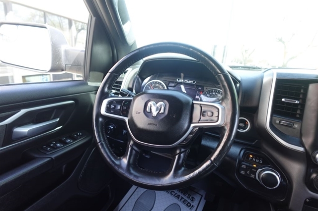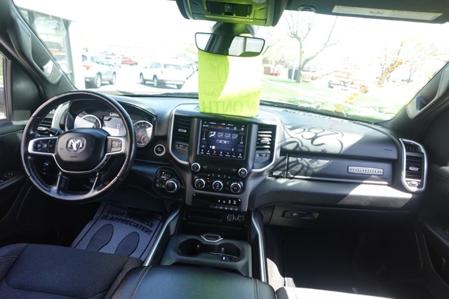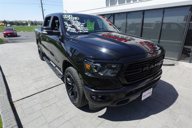 Here's the all new next generation 2020 Ram Crew Cab 4x4 just in and what a huge improvement over the last great Ram trucks. This unit comes equipped with the 5.7L V8 Hemi that produces a super impressive 395hp and mate that to the 8 speed Automatic Transmission and you're ready to tow or haul the toys on your next weekend adventure. This truck also comes with 4x4, Bighorn Package, Night Edition Package, Rear View Camera, 8.4'' Touch Screen with Audio/Climate Controls, Apple Car Play/Android Auto, Power Drivers Seat, Heated Seats, Heated Steering Wheel, Power Sliding Rear Window, Remote Start, 20'' Black Alloy Wheels, Black Exterior Badging, Black Headlamp Bezels, Black Interior Accents, Tow Package, and of course a long list of Standard Power and Safety Features. We offer bank financing with excellent rates and terms right here at the dealership, stop and see why so many people will only purchase their used vehicles from Ideal Wheels with the original Ideal Advantage which provides no labor charge on most repairs. Don't forget to check out the complimentary Carfax.