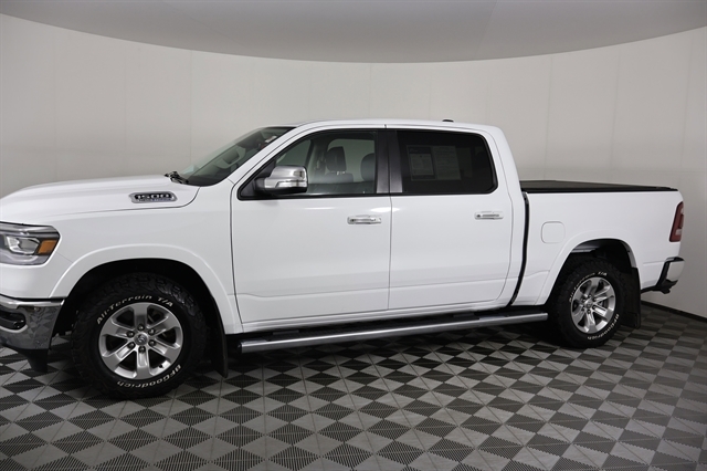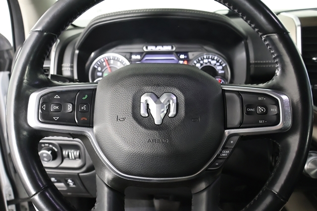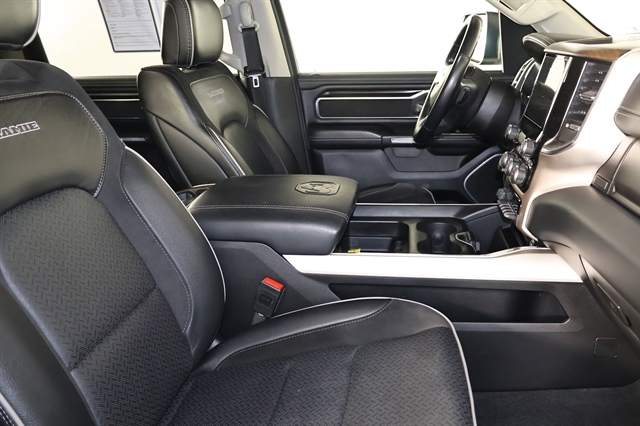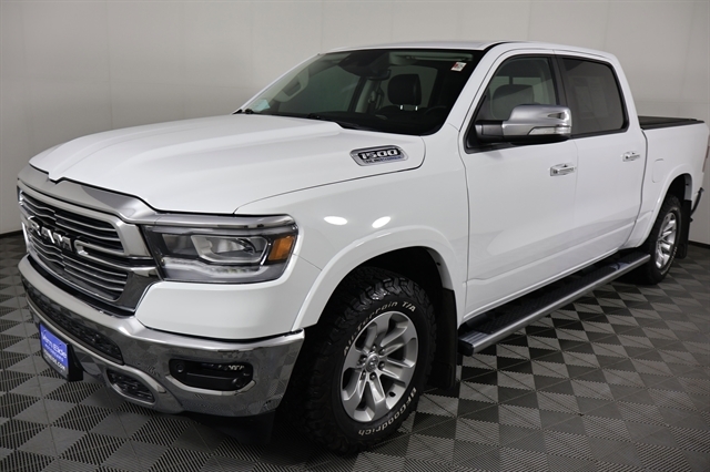 Check out the rest of the great features on this car! Bed Utility Group (MOPAR 4 Adjustable Cargo Tie-Down Hooks and Pick-Up Box Lighting), Laramie Level B Equipment Group (DISC) (4G LTE Wi-Fi Hot Spot, 8.4 Touchscreen Display, All R1 High Radios, All Radio Equipped Vehicles, Apple CarPlay, Auto High Beam Headlamp Control, Connected Travel & Traffic Services, Connectivity - US/Canada, Disassociated Touchscreen Display, Foam Bottle Insert (Door Trim Panel), For Details, Visit DriveUconnect.com, For More Info, Call 800-643-2112, Global Telematics Box Module (TBM), Google Android Auto, GPS Antenna Input, GPS Navigation, HD Radio, Heated Second Row Seats, Integrated Center Stack Radio, Integrated Voice Command w/Bluetooth, ParkSense Front/Rear Park Assist w/Stop, Radio: Uconnect 5 Nav w/8.4 Display, Rain Sensitive Windshield Wipers, Rear 60/40 Folding Split Recline Seat, Remote Tailgate Release, SiriusXM Radio Service, SiriusXM w/360L, and USB Host Flip), Quick Order Package 27H Laramie, #1 Seat Foam Cushion, 10 Speakers, 2nd Row In Floor Storage Bins, 3 Rear Seat Head Restraints, 3.21 Rear Axle Ratio, 33 Gallon Fuel Tank, 4 Way Front Headrests, 4-Wheel Disc Brakes, 48V Belt Starter Generator, ABS brakes, Adjustable pedals, Air Conditioning, Alloy wheels, AM/FM radio: SiriusXM, Apple CarPlay/Android Auto, Audio memory, Auto-dimming door mirrors, Auto-Dimming Exterior Driver Mirror, Auto-dimming Rear-View mirror, Automatic temperature control, Brake assist, Bumpers: chrome, Chrome Exterior Mirrors, Compass, Convex Wide-Angle Mirror Insert, Delay-off headlights, Driver door bin, Driver Seat Memory, Driver vanity mirror, Dual front impact airbags, Dual front side impact airbags, Electronic Stability Control, Engine Block Heater, Exterior Mirrors Courtesy Lamps, Exterior Mirrors w/Heating Element, Exterior Mirrors w/Memory, Exterior Mirrors w/Supplemental Signals, Front anti-roll bar, Front Center Armrest w/Storage, Front dual zone A/C, Front fog lights, Front License Plate Bracket, Front reading lights, Front Seat Back Map Pockets, Front wheel independent suspension, Fully automatic headlights, Garage door transmitter, Heated door mirrors, Heated Front Seats, Heated front seats, Heated Steering Wheel, Heated steering wheel, Heavy-Duty Engine Cooling, Illuminated entry, Leather steering wheel, Leather Trim 40/20/40 Bench Seat, Low tire pressure warning, Memory seat, MOPAR Front & Rear Rubber Floor Mats, Occupant sensing airbag, Outside temperature display, Overhead airbag, Overhead console, Panic alarm, ParkView Rear Back-Up Camera, Passenger door bin, Passenger vanity mirror, Pedal memory, Power 2-Way Driver Lumbar Adjust, Power 2-Way Passenger Lumbar Adjust, Power 8-Way Driver & Passenger Seats, Power door mirrors, Power driver seat, Power passenger seat, Power steering, Power windows, Power-Folding Mirrors, Radio data system, Radio: Uconnect 5 W w/8.4 Display, Rear 60/40 Folding Seat, Rear anti-roll bar, Rear seat center armrest, Rear step bumper, Rear Underseat Compartment Storage (DISC), Rear window defroster, Remote keyless entry, Security system, Speed control, Split folding rear seat, Steering wheel mounted audio controls, Tachometer, Telescoping steering wheel, Tilt steering wheel, Traction control, Trailer Brake Control, Trip computer, Turn signal indicator mirrors, Variably intermittent wipers, Ventilated Front Seats, Ventilated front seats, Voltmeter, Wheel to Wheel Side Steps, and Wheels: 18 x 8 Aluminum Base PainteD.