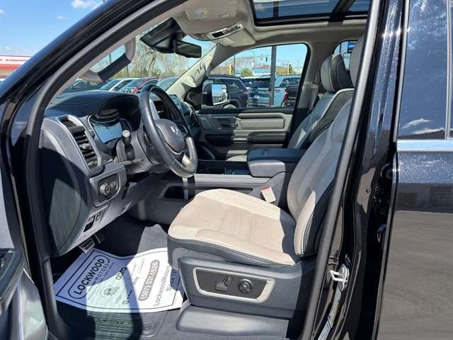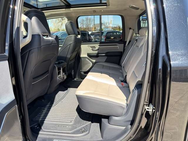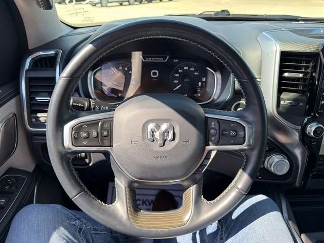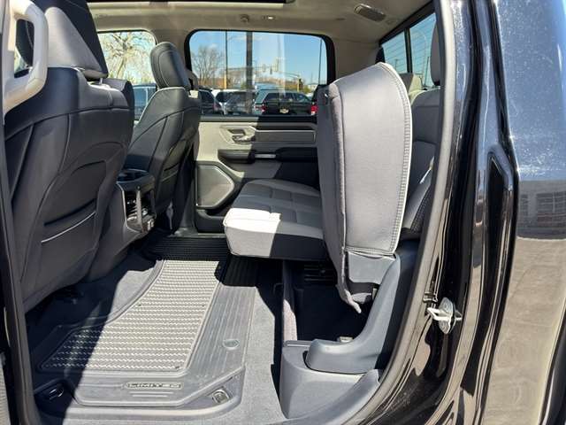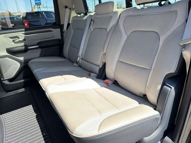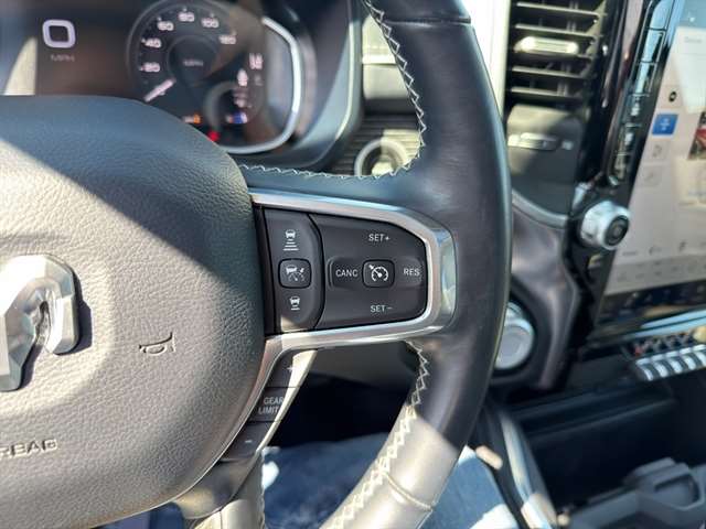 The Ram 1500's Forward Collision Warning system alerts the driver to potential front-end collisions, enhancing safety. Protect this Ram 1500 from unwanted accidents with a cutting edge backup camera system. The leather seats in this unit are a must for buyers looking for comfort, durability, and style. with XM/Sirus Satellite Radio you are no longer restricted by poor quality local radio stations while driving this vehicle. Anywhere on the planet, you will have hundreds of digital stations to choose from. The installed navigation system will keep you on the right path. Keep your hands warm all winter with a heated steering wheel in this unit . This model offers Android Auto for seamless smartphone integration. This model has a premium sound system installed. This Ram 1500 features a hands-free Bluetooth phone system. It has satellite radio capabilities. This unit stays safely in its lane with Lane Keep Assist. The Ram 1500 has automated speed control that adjusts to maintain a safe following distance, enhancing highway driving convenience.